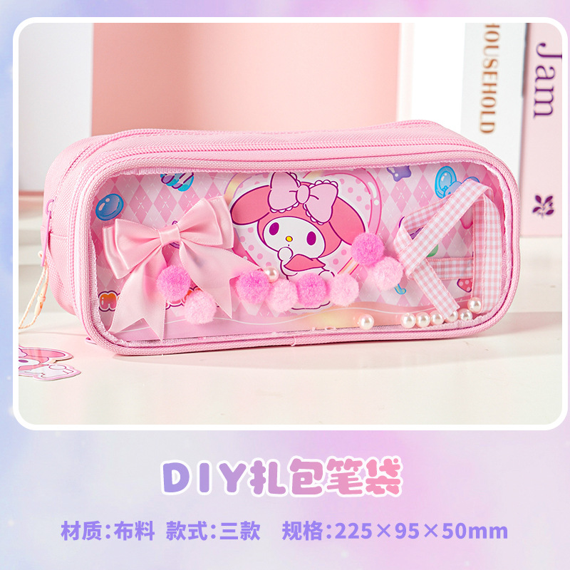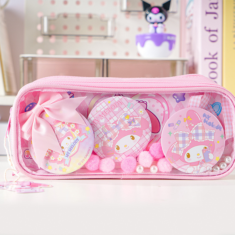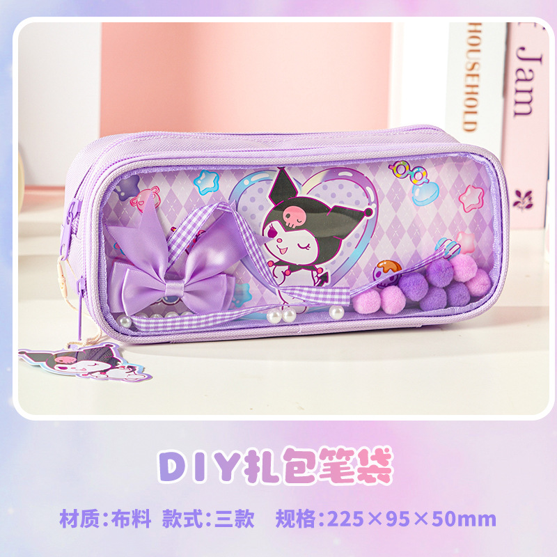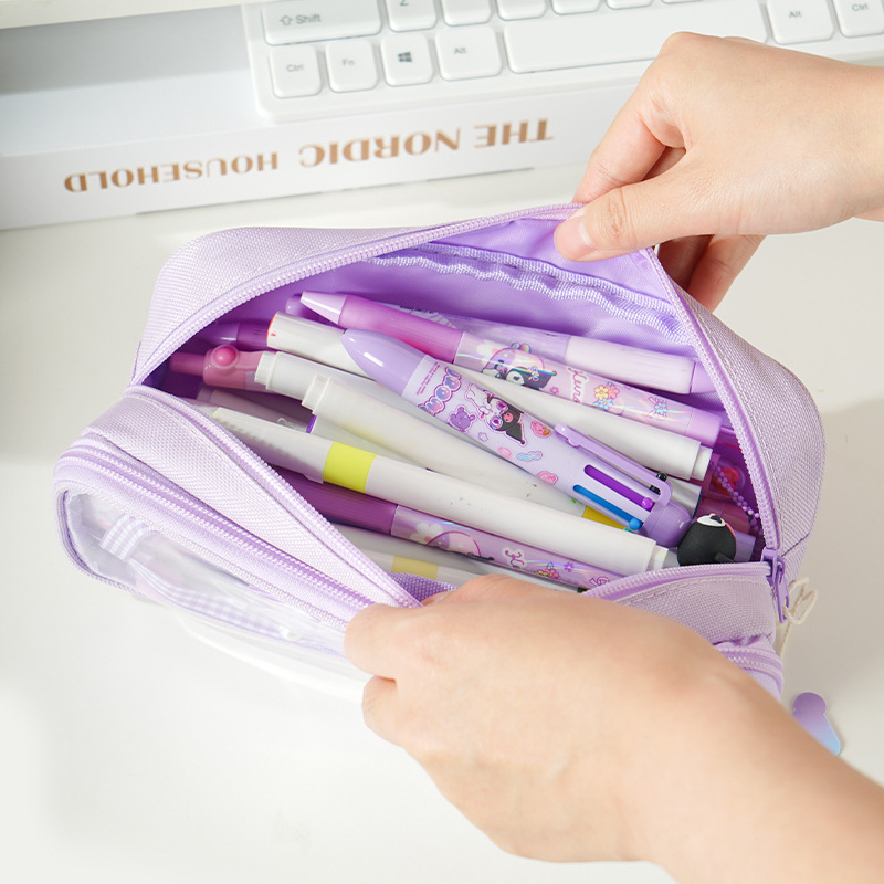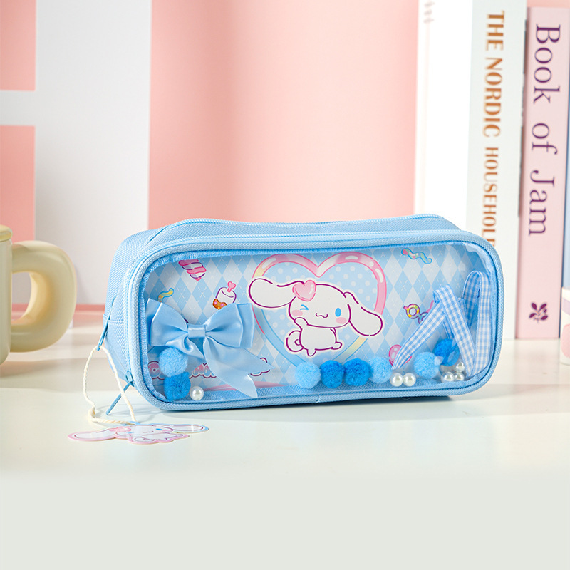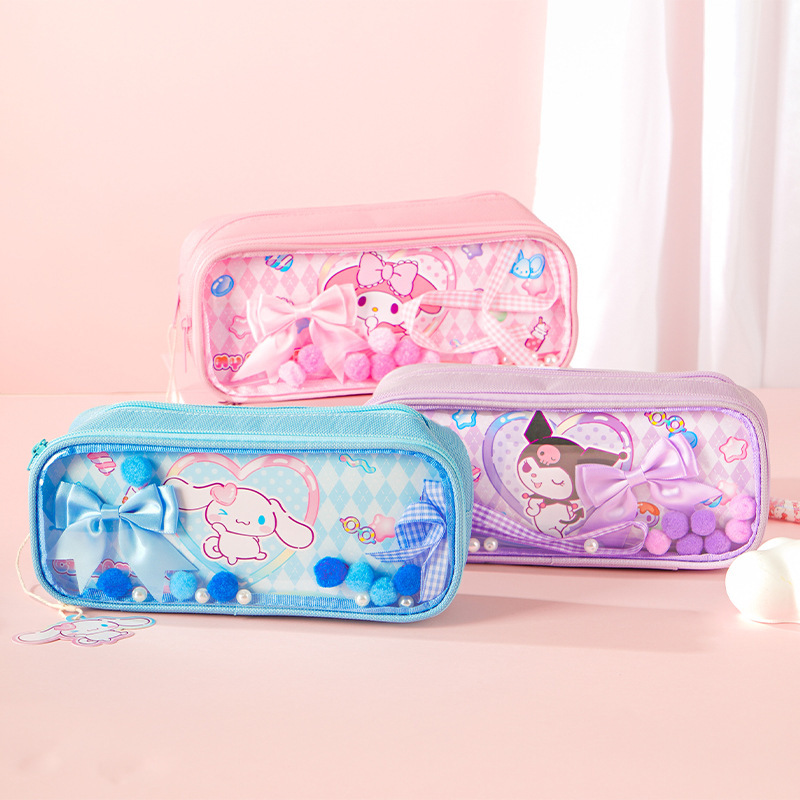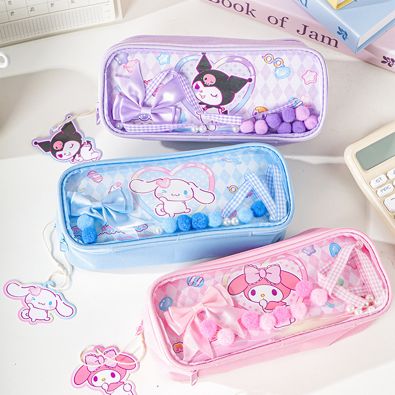 산리오 정품 공인 Kulomi 더블 레이어 연필 가방 대용량 투명 연필 가방 소녀 새로운 문구 연필 가방스토어 가기