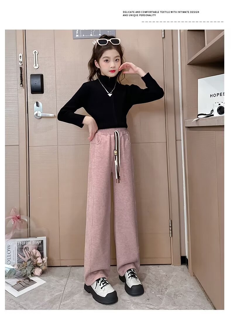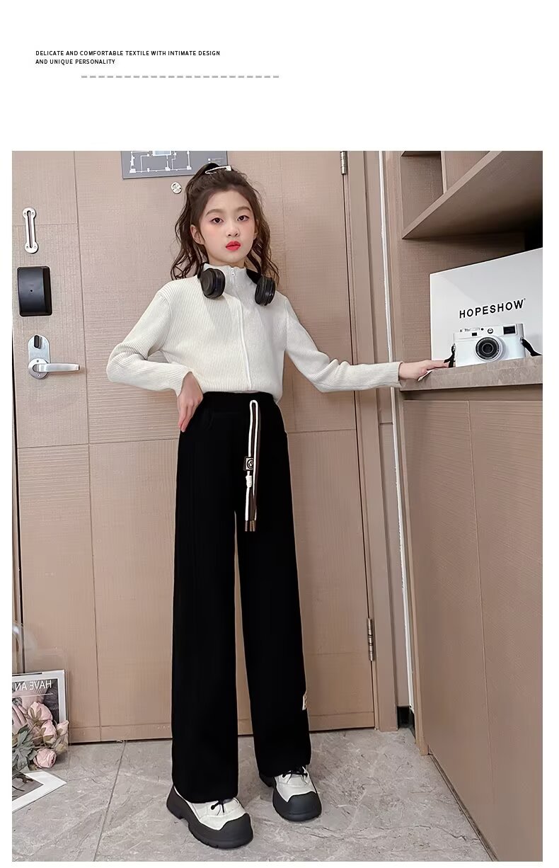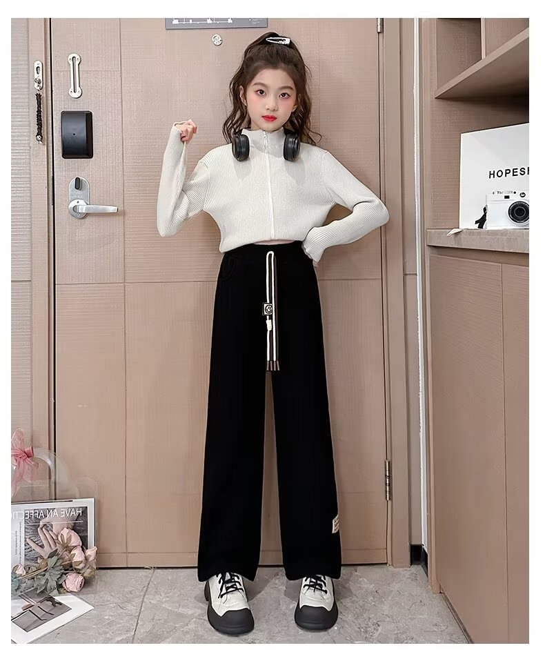 여아용 캐주얼 넓은 다리 바지 슬리밍 새로운 느슨한 긴 바지 캐주얼 소녀 대형 어린이를위한 스트레이트 바지