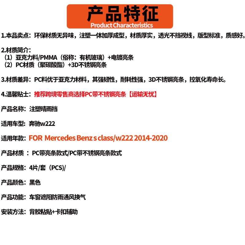 메르세데스-벤츠 S-클래스 레인 쉴드 벤츠 S 클래스 W222 2014-2020윈도우 바이저에 적합