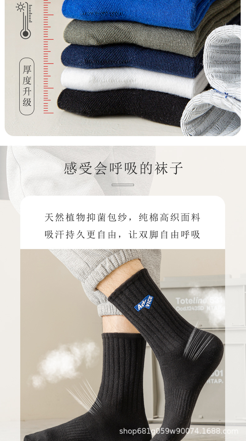 주지 양말 남성용 겨울 벅 긴면 땀 흡수 탈취제 7a 항균 두꺼운 면 남성 유행 중간 튜브스토어 가기