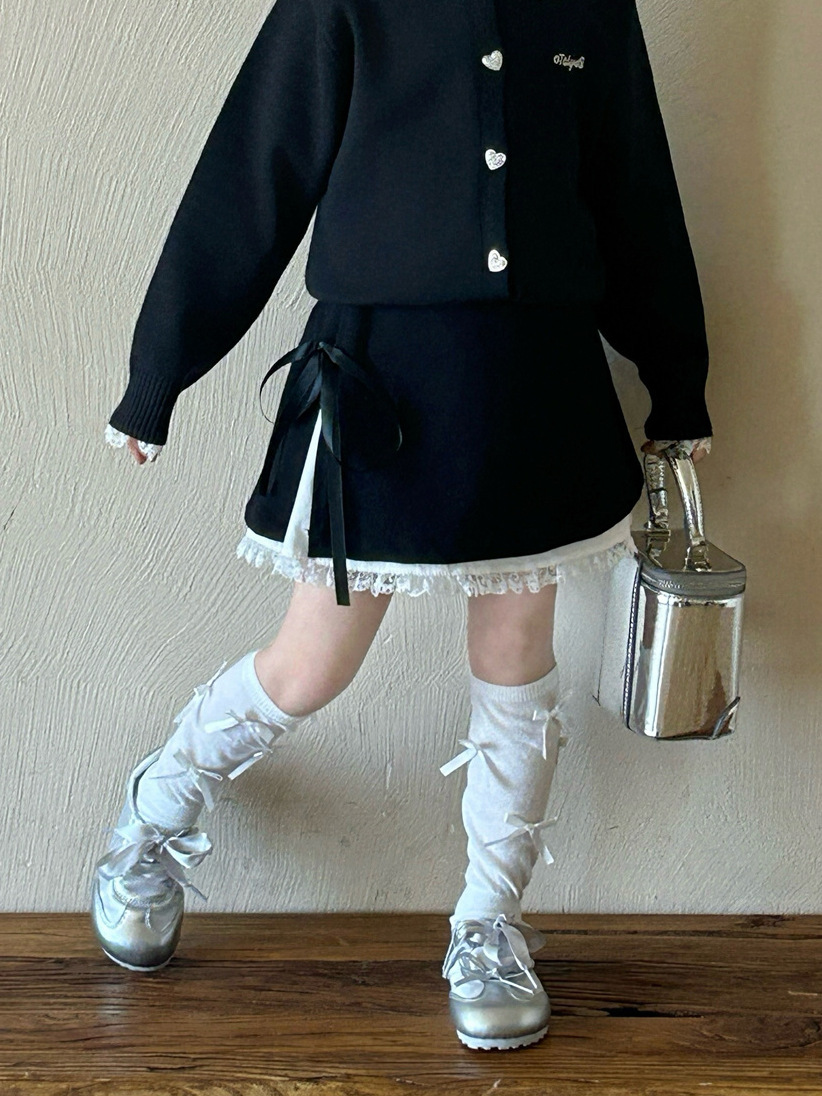 2025 가을 신상 여아 패션 리본 레이스 스커트 한국 스타일 여자 아기 멋스러운 다용도 짧은 치마