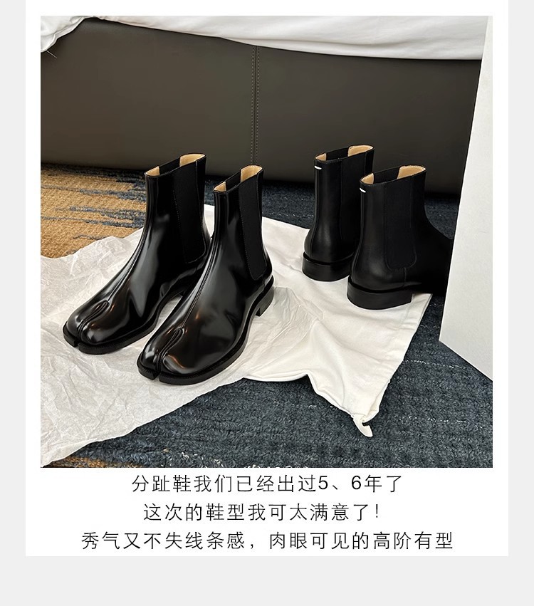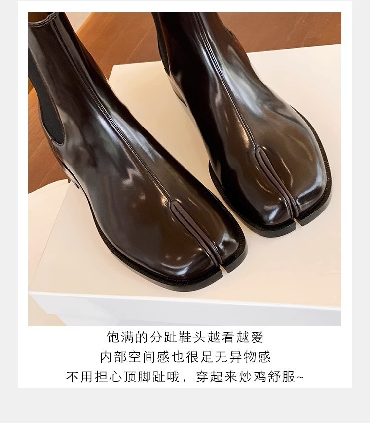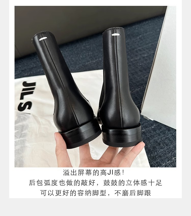 Cowhide Edition ~ 포도 엄마 같은 신발 Salix Toe 짧은 부츠 영국 스타일 조커 미들 배럴 두꺼운 힐 스트레치 첼시 부츠 여성