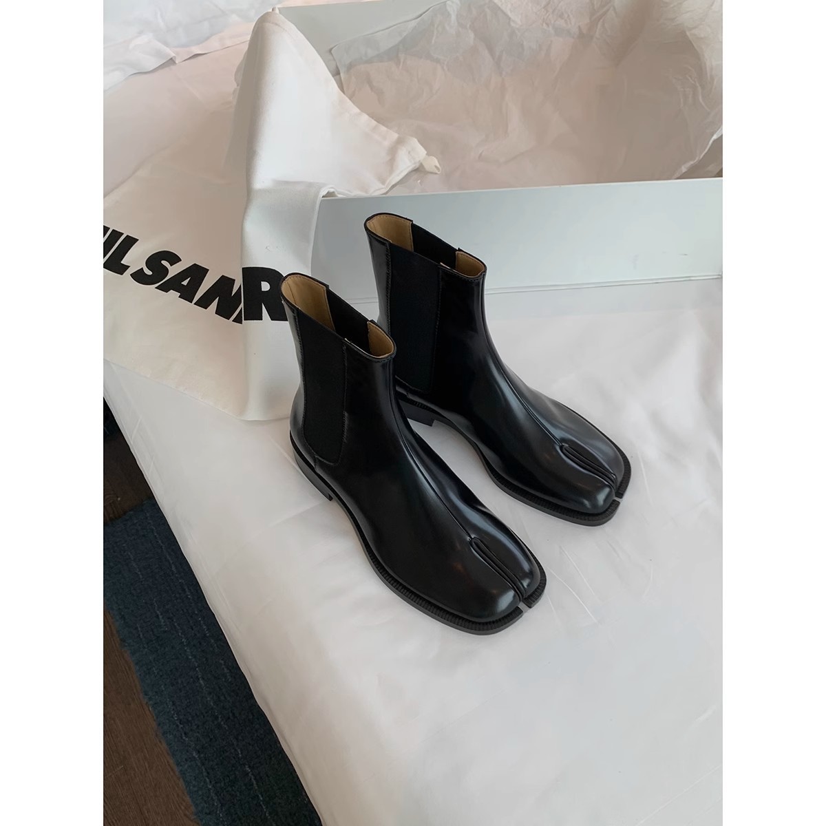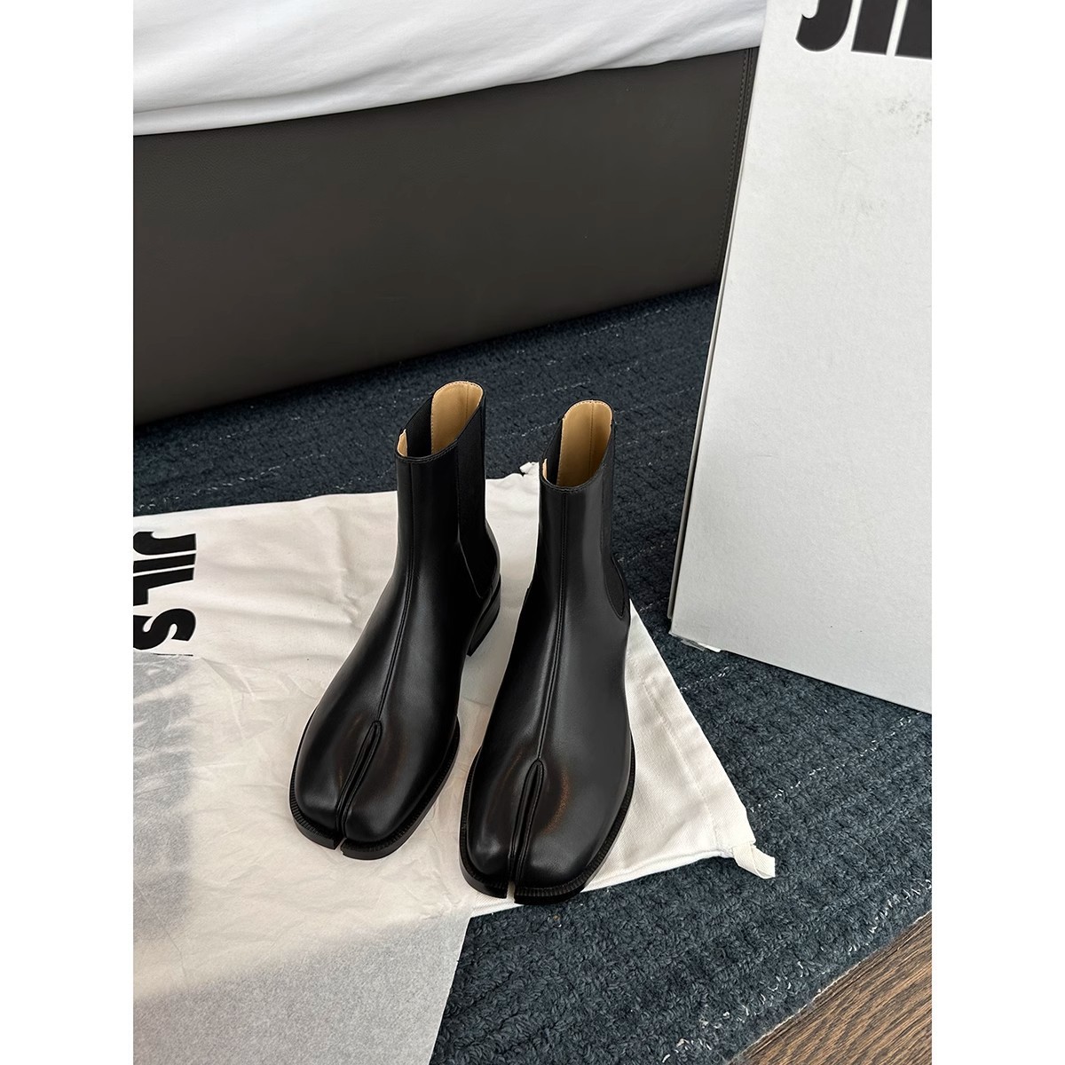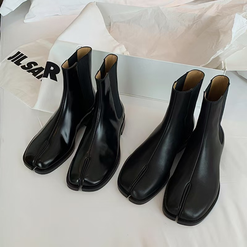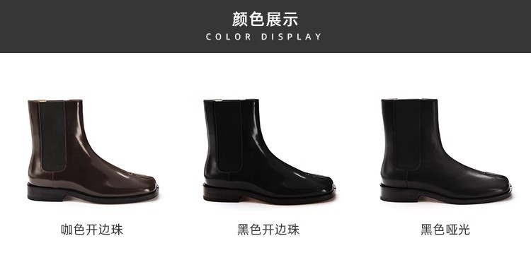 Cowhide Edition ~ 포도 엄마 같은 신발 Salix Toe 짧은 부츠 영국 스타일 조커 미들 배럴 두꺼운 힐 스트레치 첼시 부츠 여성스토어 가기