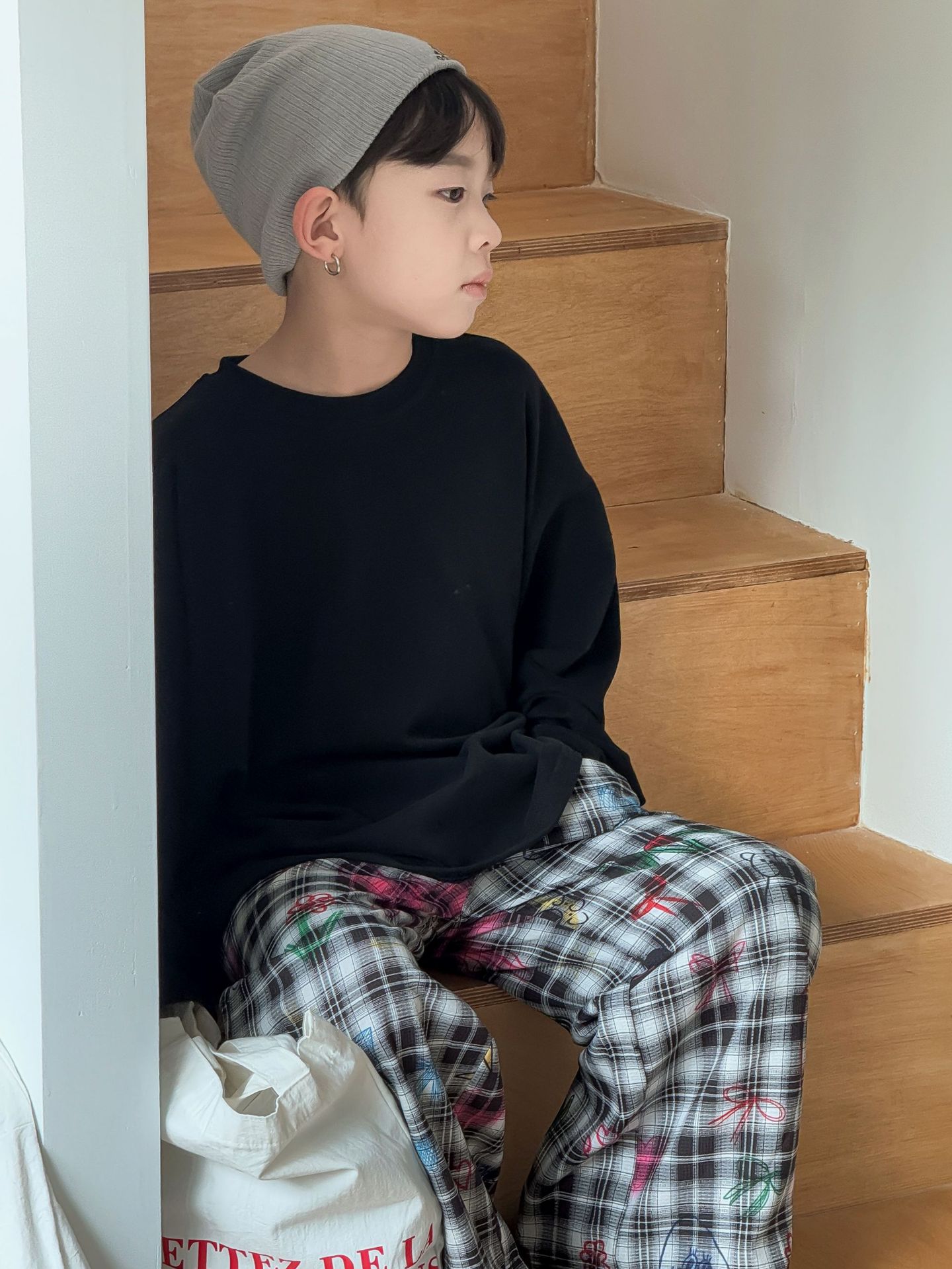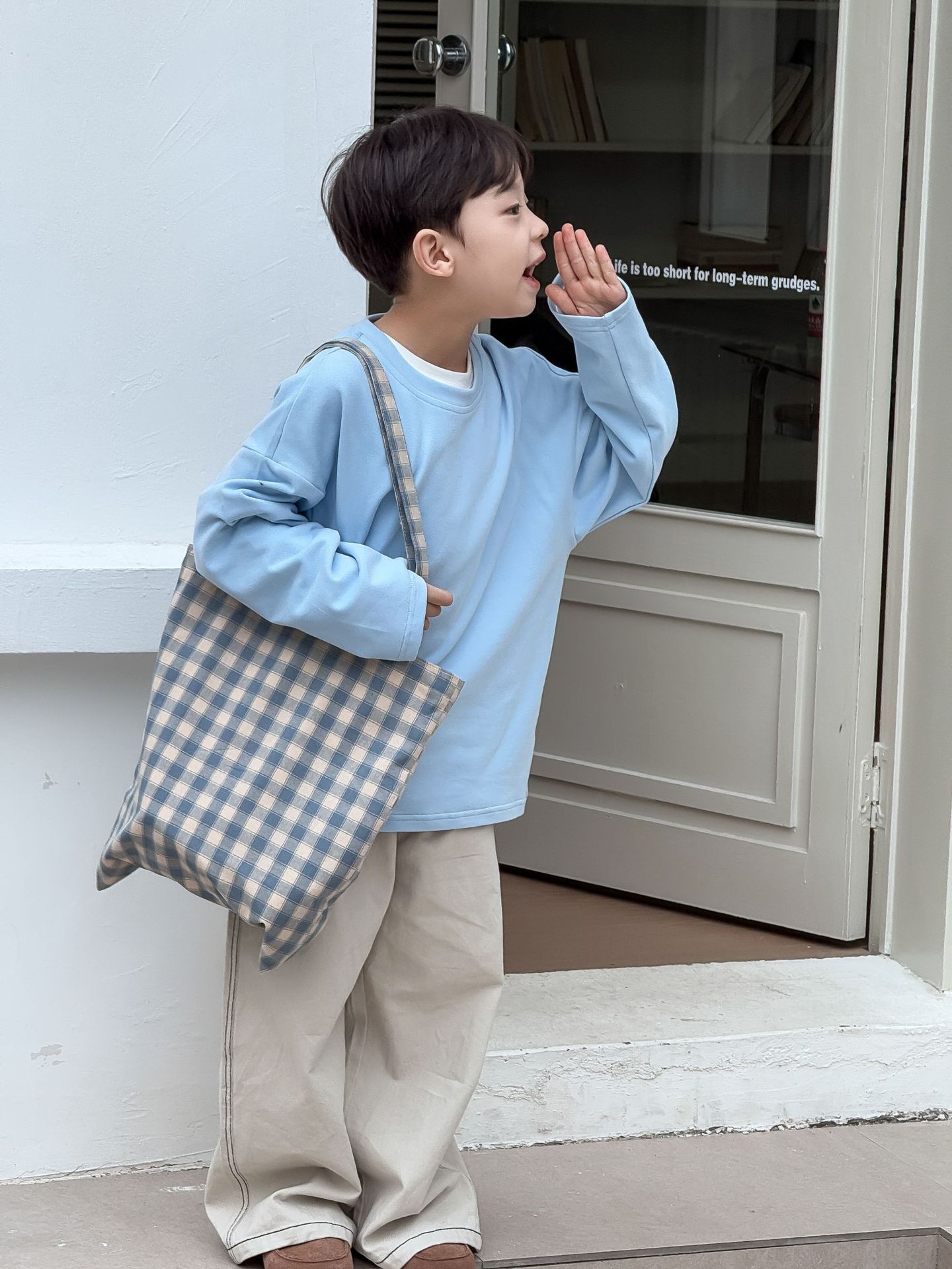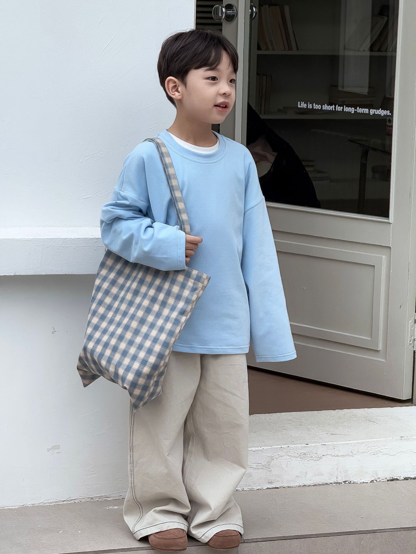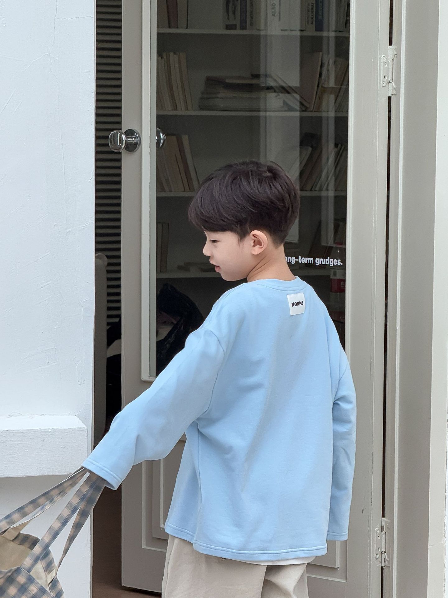 소년과 어린이를위한 25 봄 새로운 아동복 4 색 부드러운 피부 친화적 인 라벨 탄성 단색 느슨한 긴팔 티셔츠스토어 가기