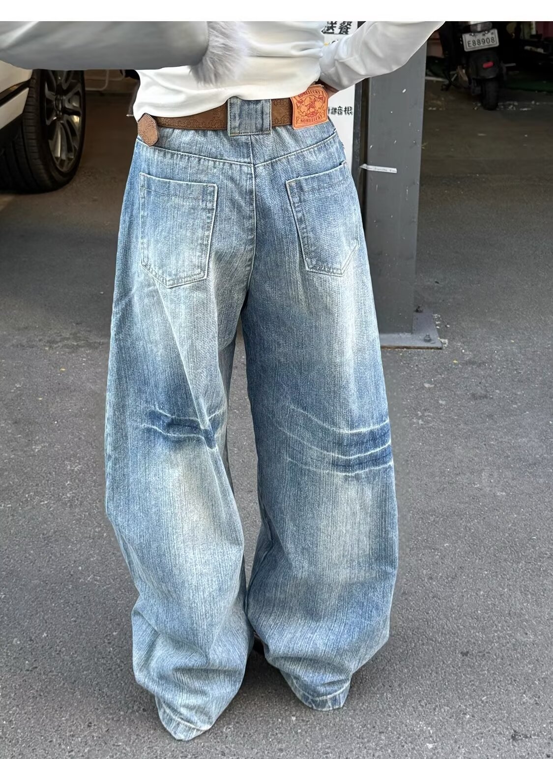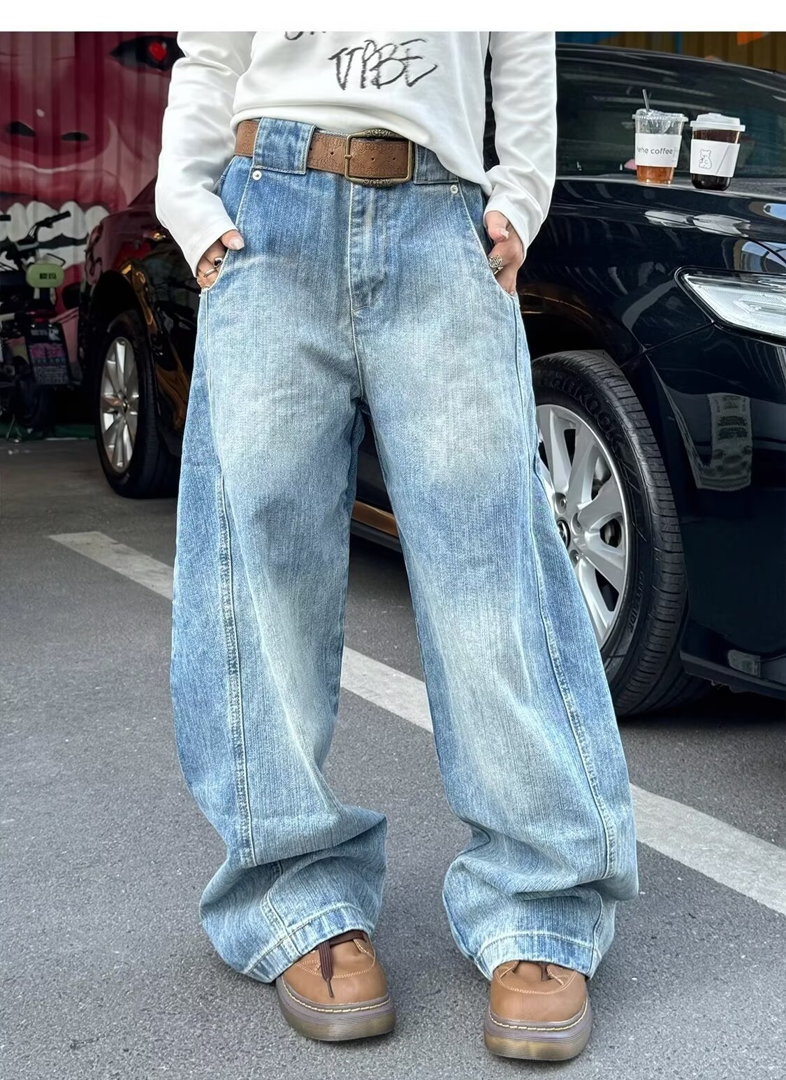 American Vintage Washed Slub Deconstructed Scimitar Jeans 여성용 가을과 겨울 2025 새로운 높은 허리 스트레이트 와이드 레그 팬츠스토어 가기