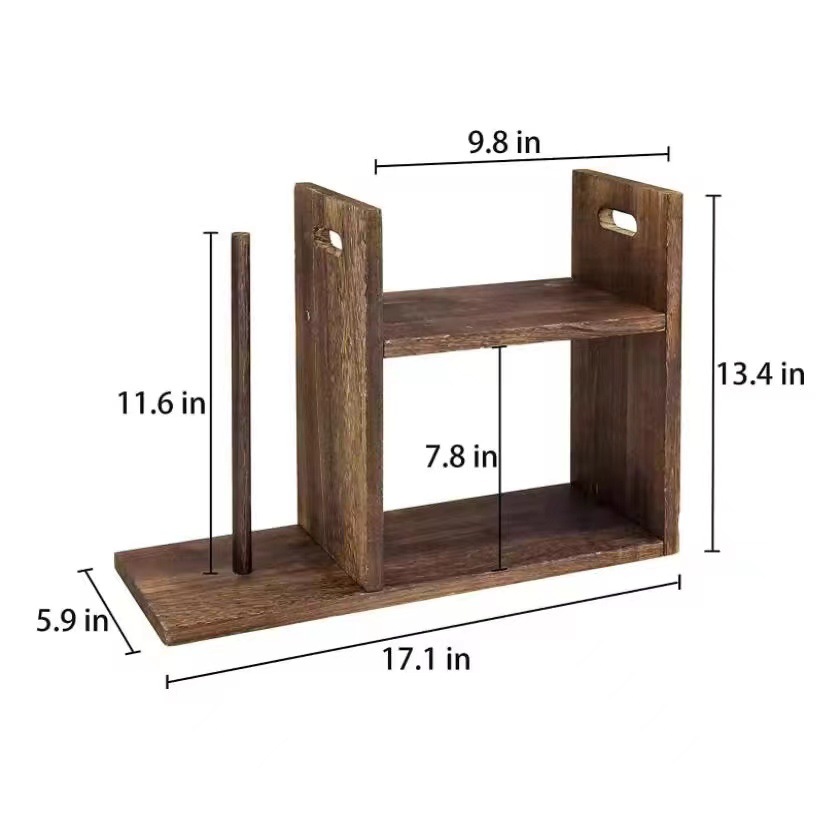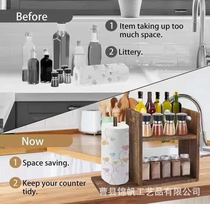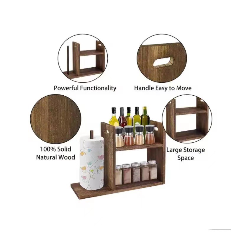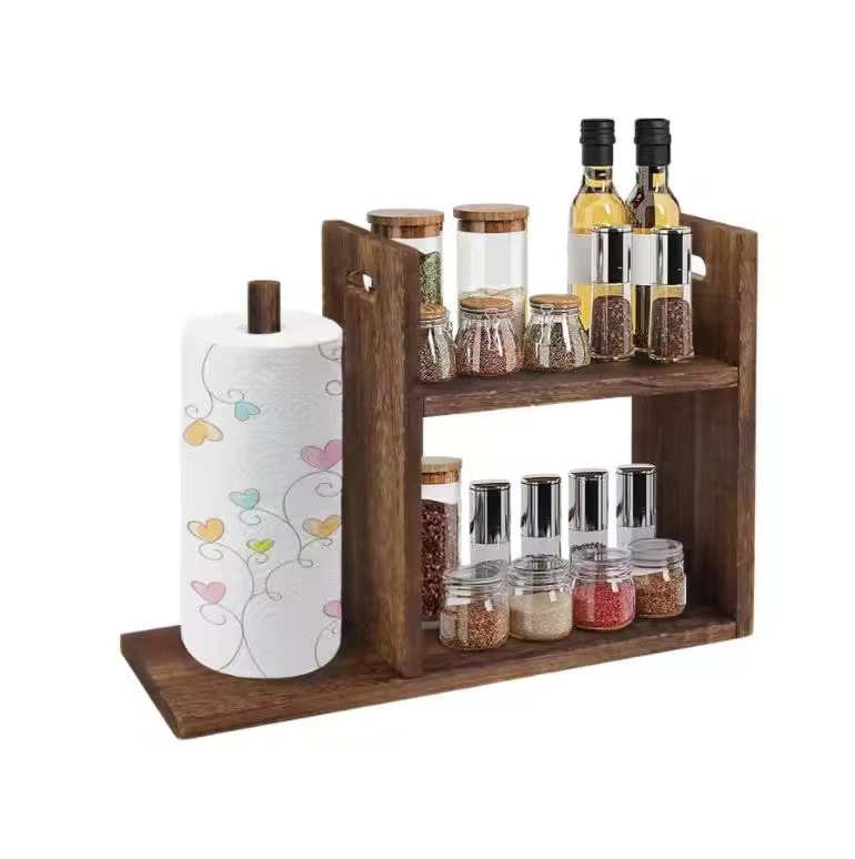 빈티지 나무 데스크탑 더블 레이어 조미료 스토리지 랙 더블 레이어 오일 흡수 종이 양념 스토리지 랙 다목적 디스플레이 랙