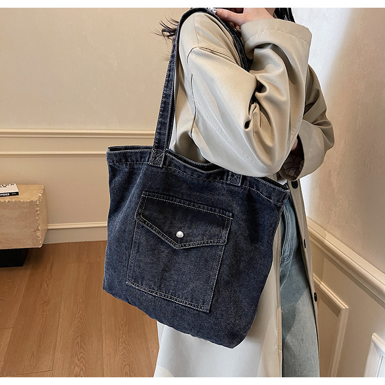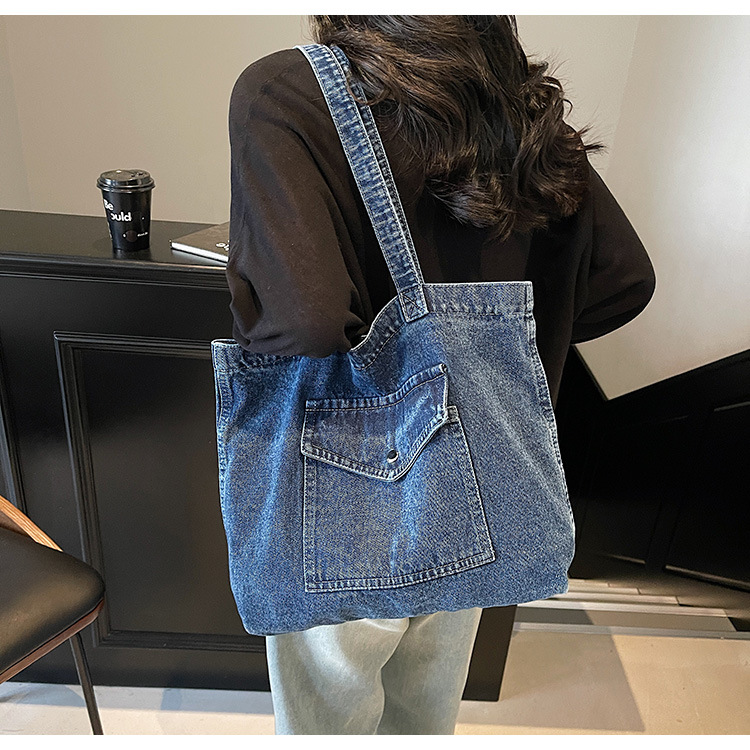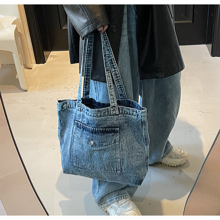 빈티지 데님 가방 여성 가방 2025 새로운 대용량 캠퍼스 스타일 어깨 가방 Ins 캐주얼 핸드 토트 백스토어 가기