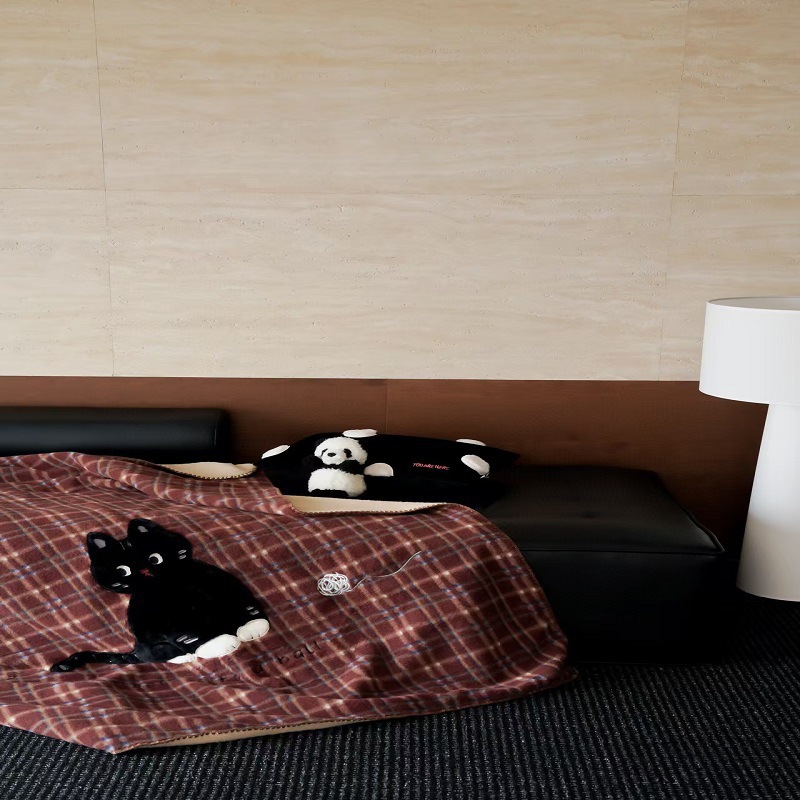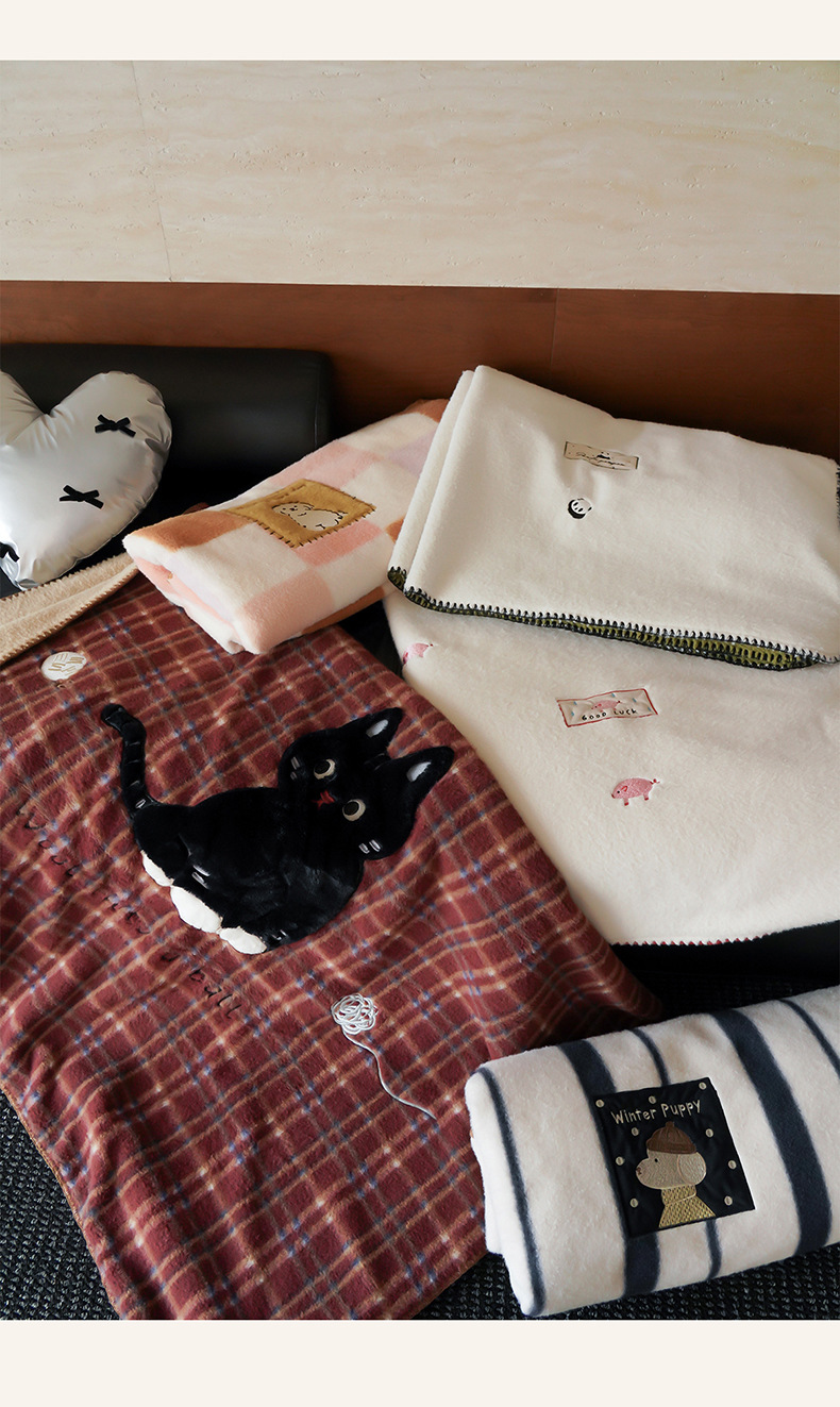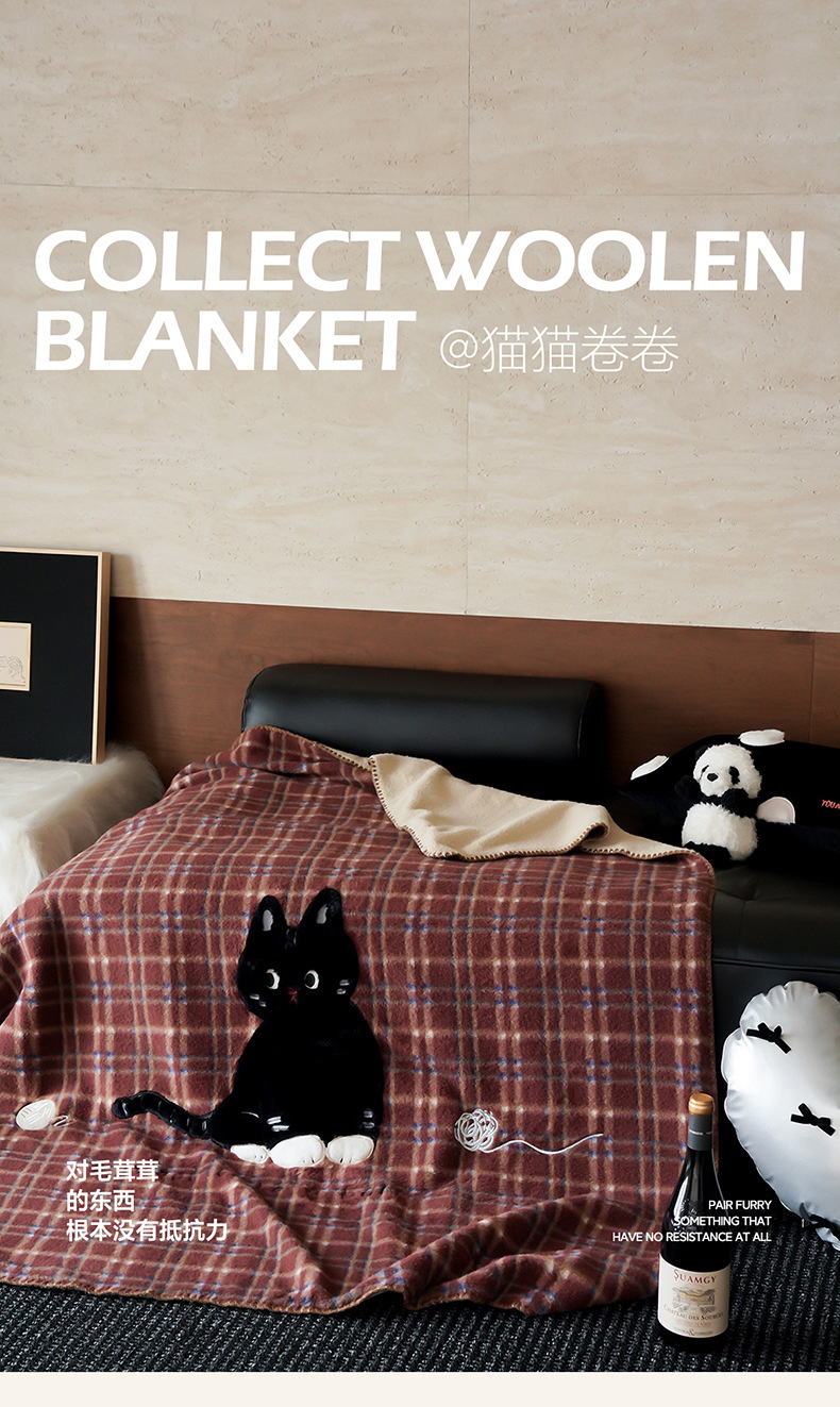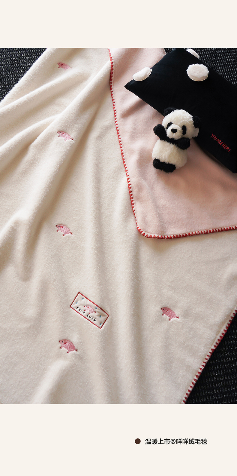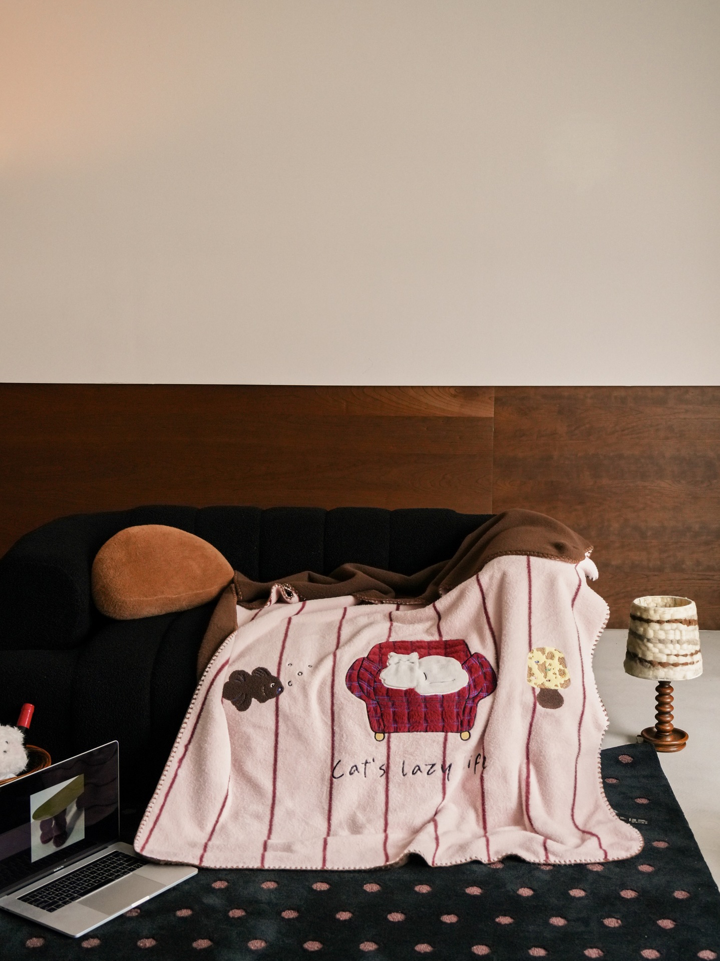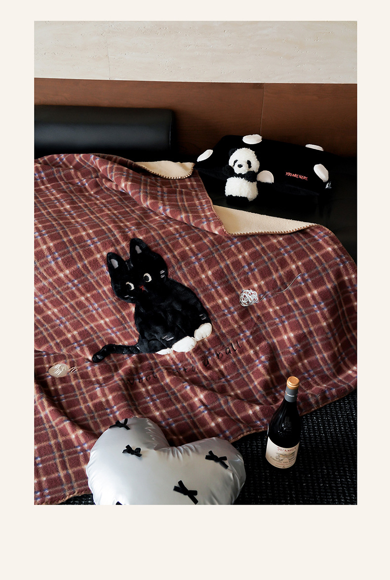 인 블로거 스타일 만화 및 벨벳 담요 귀여운 새끼 고양이 자수 담요 유치원 낮잠 커버 레저 소파 담요스토어 가기