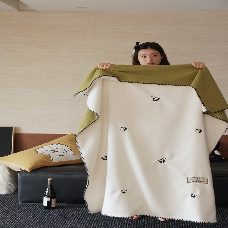 인 블로거 스타일 만화 및 벨벳 담요 귀여운 새끼 고양이 자수 담요 유치원 낮잠 커버 레저 소파 담요