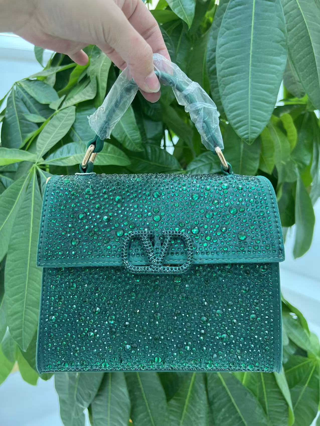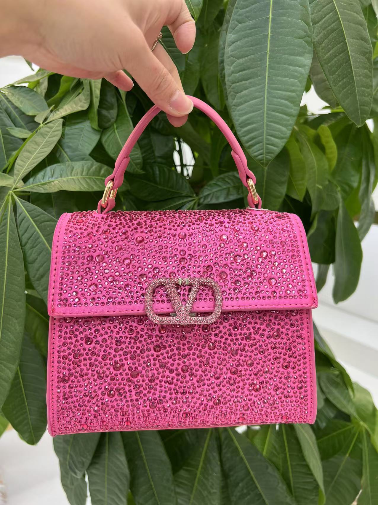 2025년 신상 반짝이는 다이아몬드 풀스톤 블링블링 V자형 크로스백 핸드백 숄더백 여성용 가방