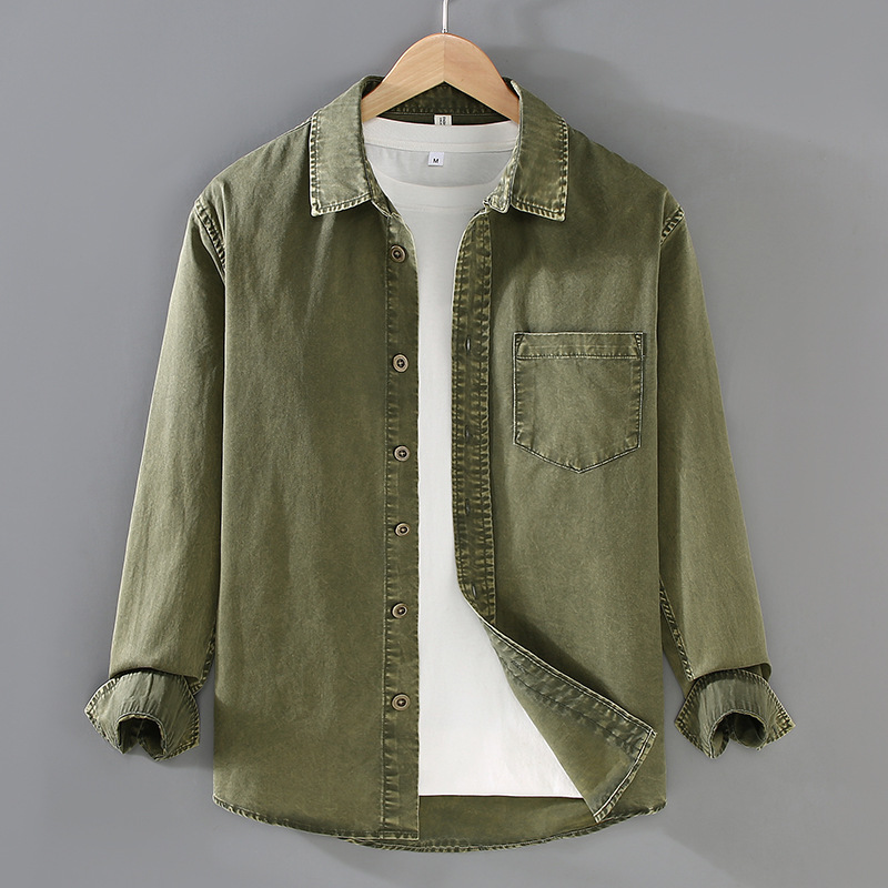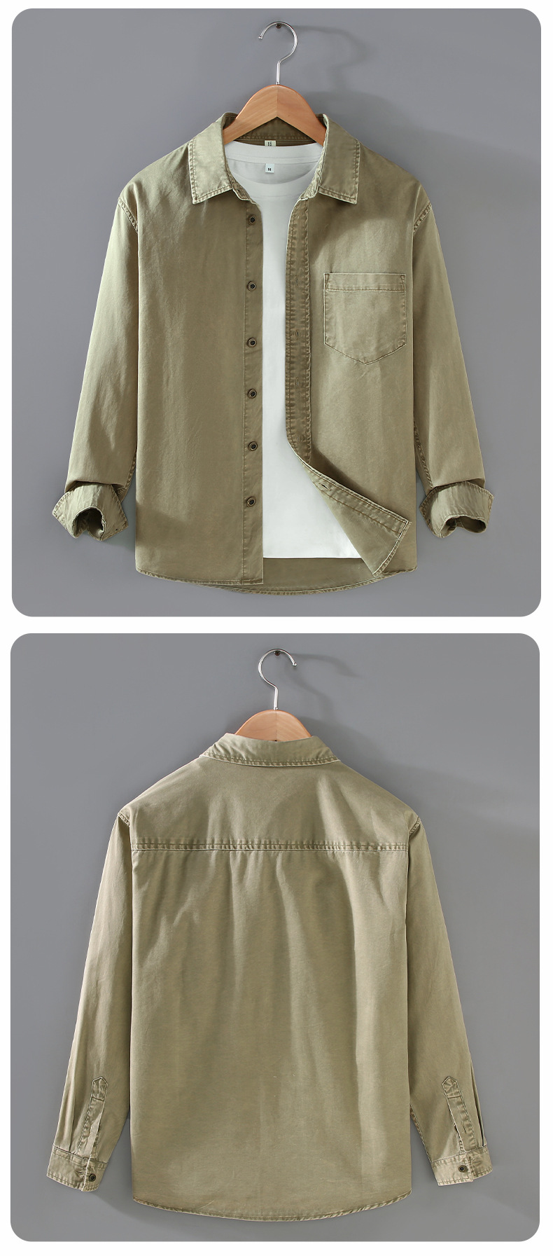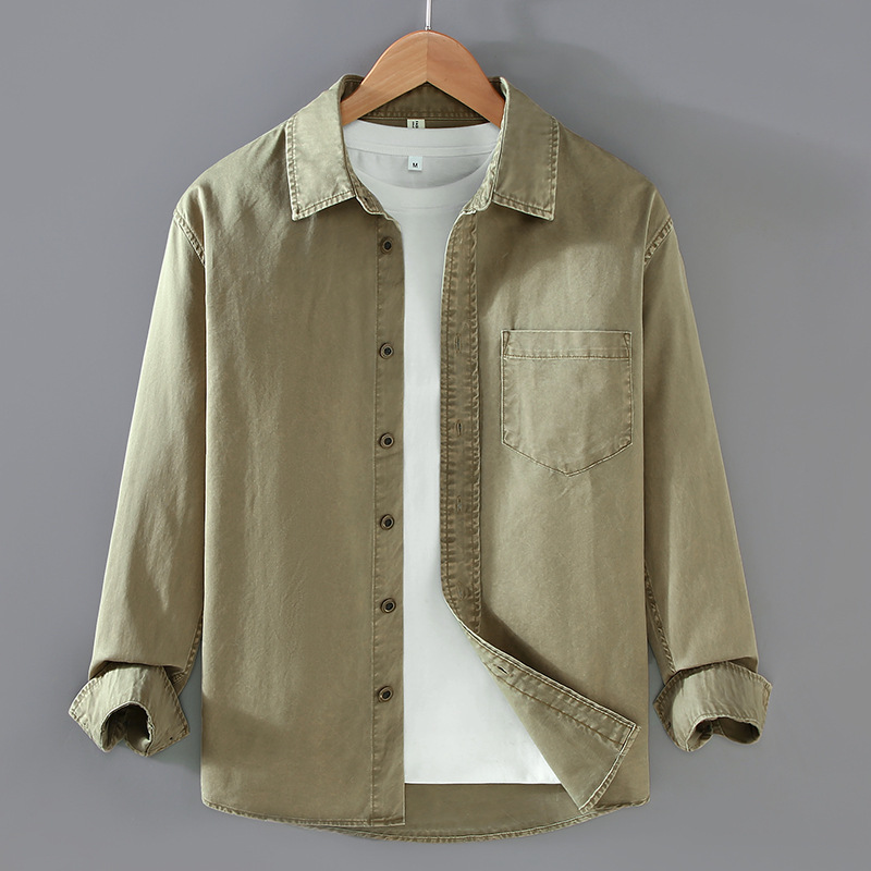 82530 봄과 가을 간단한 올매치 남자 긴팔 셔츠 캐주얼 느슨한 남자 일본 스타일 단색 청소년 셔츠