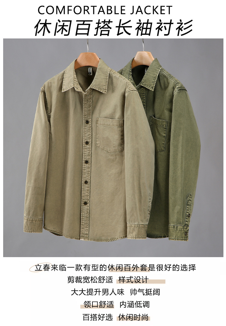 82530 봄과 가을 간단한 올매치 남자 긴팔 셔츠 캐주얼 느슨한 남자 일본 스타일 단색 청소년 셔츠스토어 가기