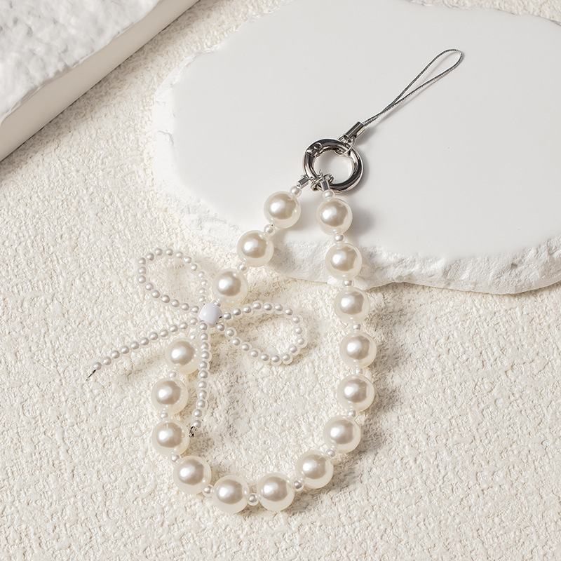 • 다이아몬드가 세팅된 라이트 럭셔리 진주 휴대폰 체인