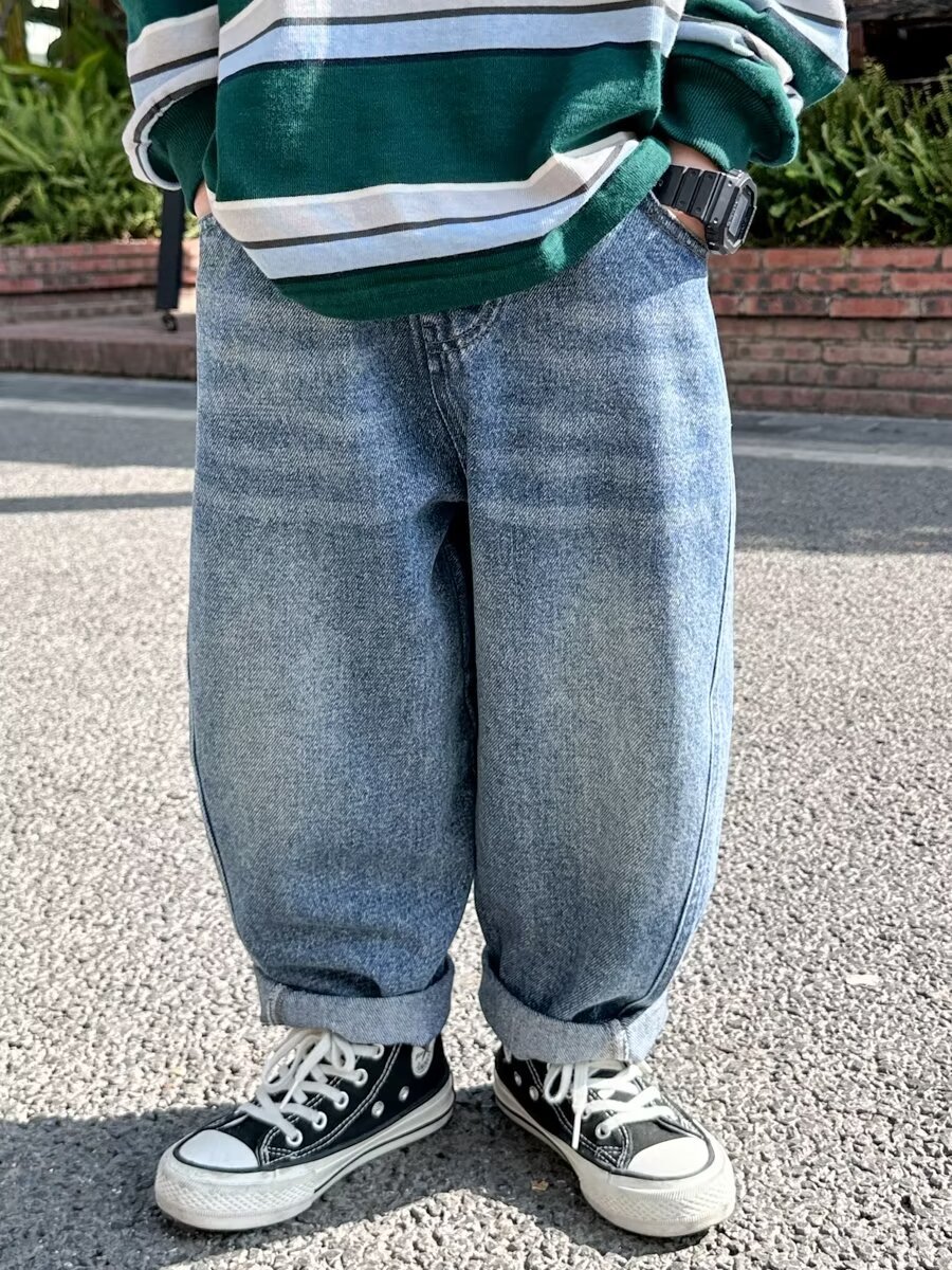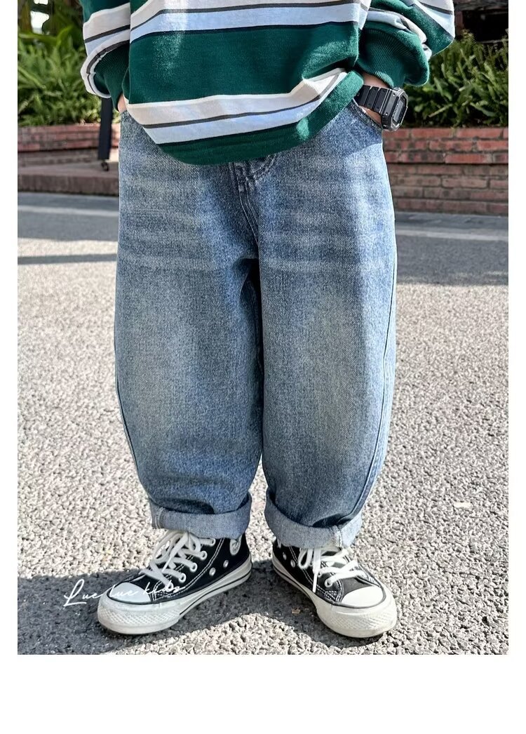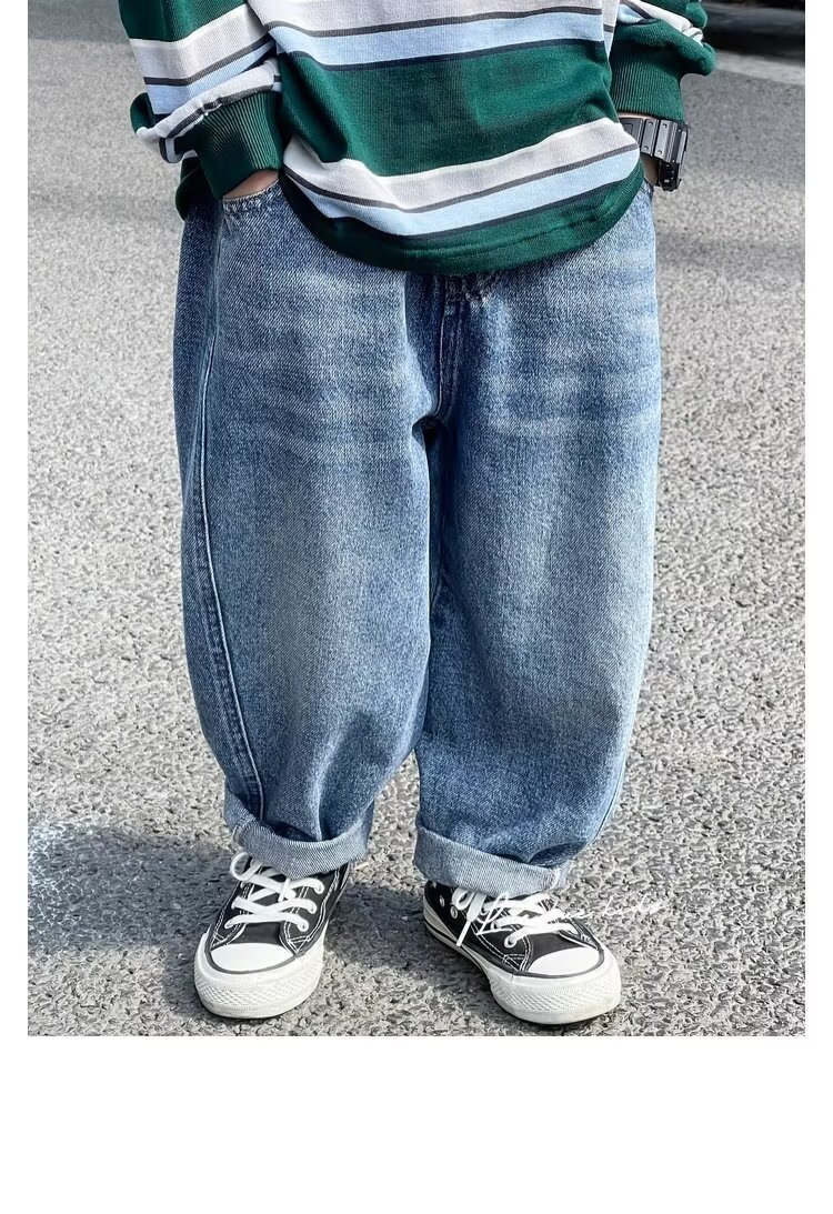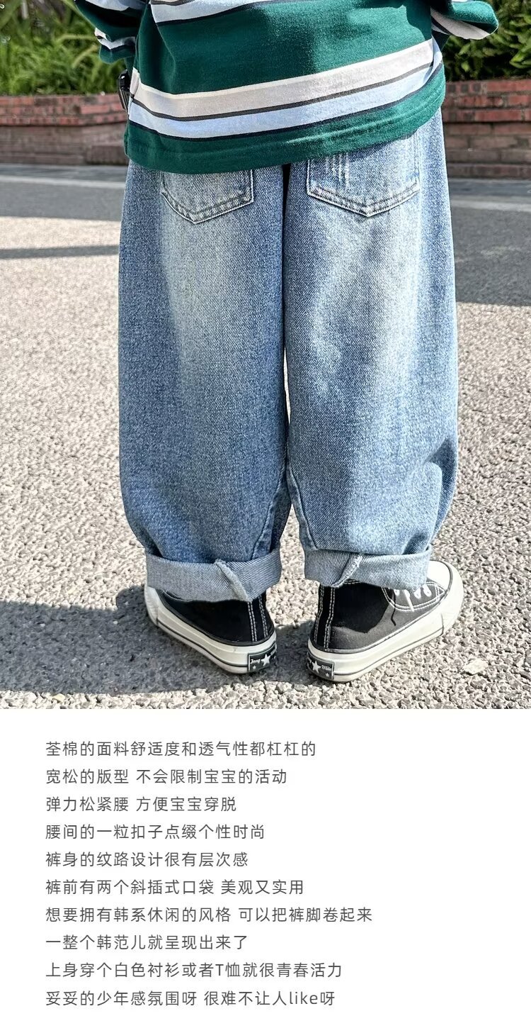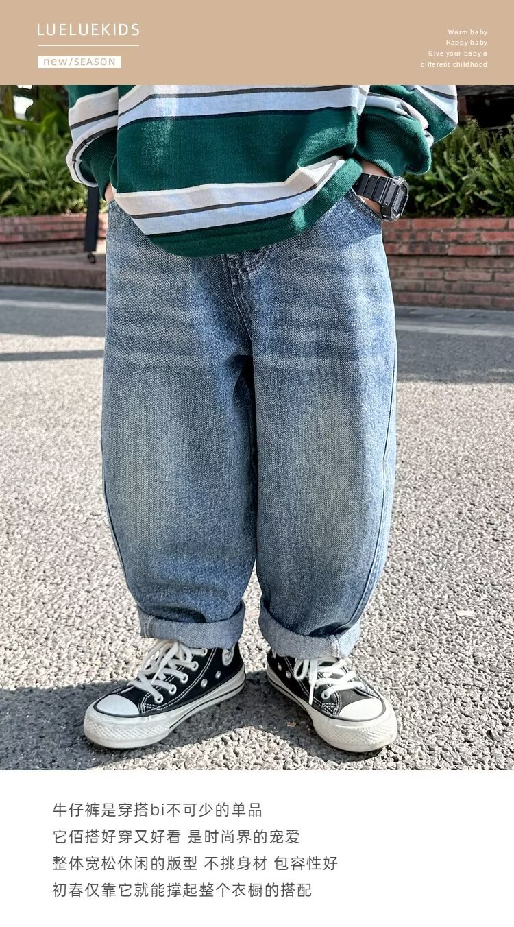 소년 청바지 2025 봄과 가을 새로운 어린이 한국 스타일 느슨한 캐주얼 바지 대형 어린이 스트레이트 바지스토어 가기