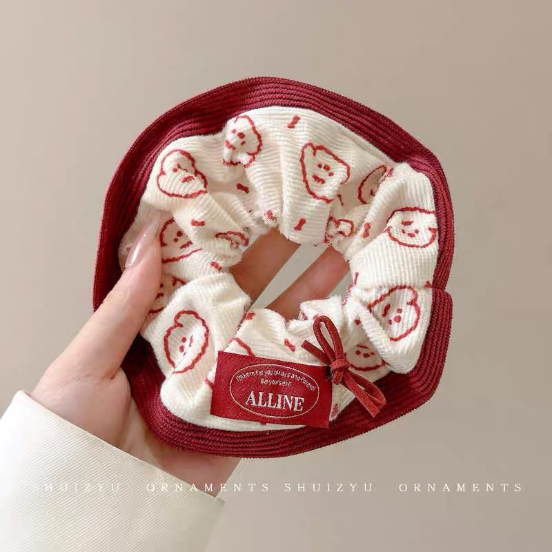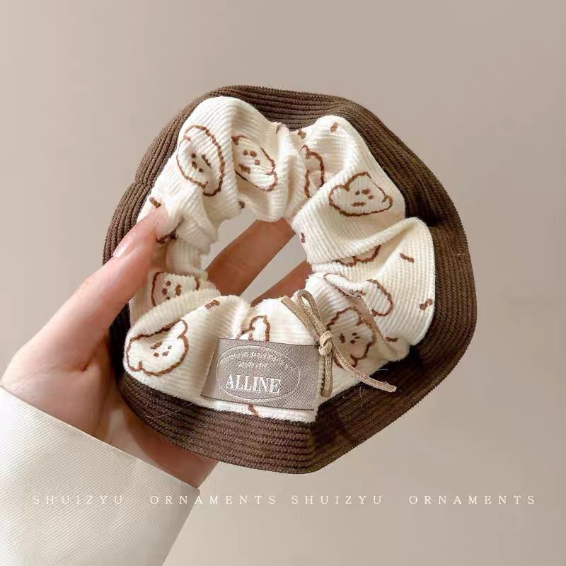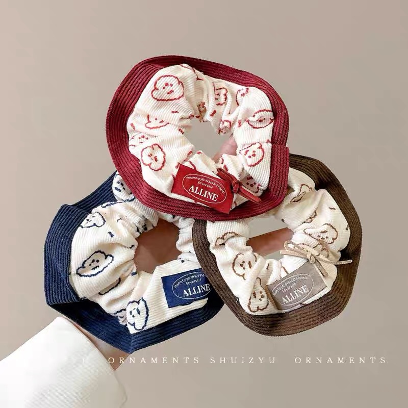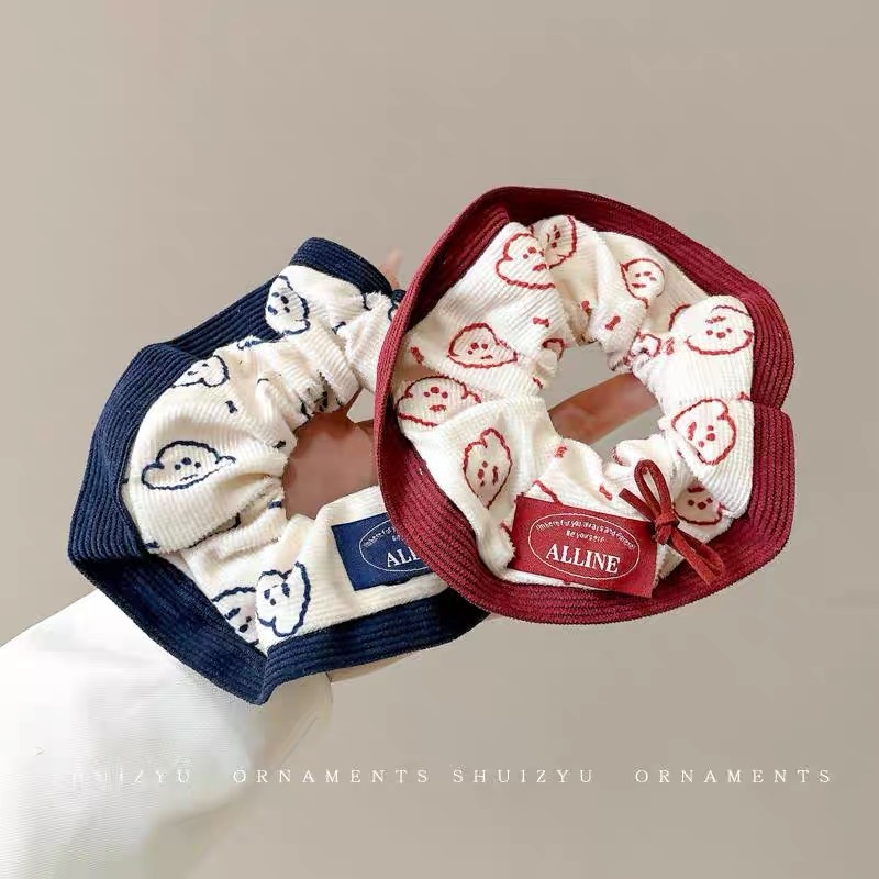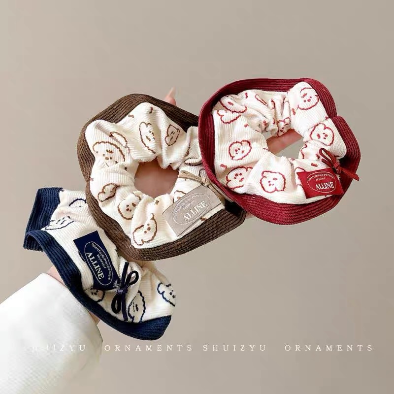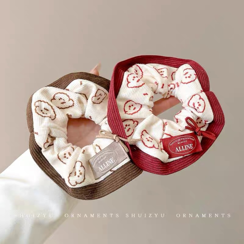 한국 스타일 가을과 겨울 새로운 만화 강아지 큰 장내 헤어 루프 달콤한 소녀 볼 머리 포니 테일 헤어 로프 타이 헤어 헤드웨어 여성