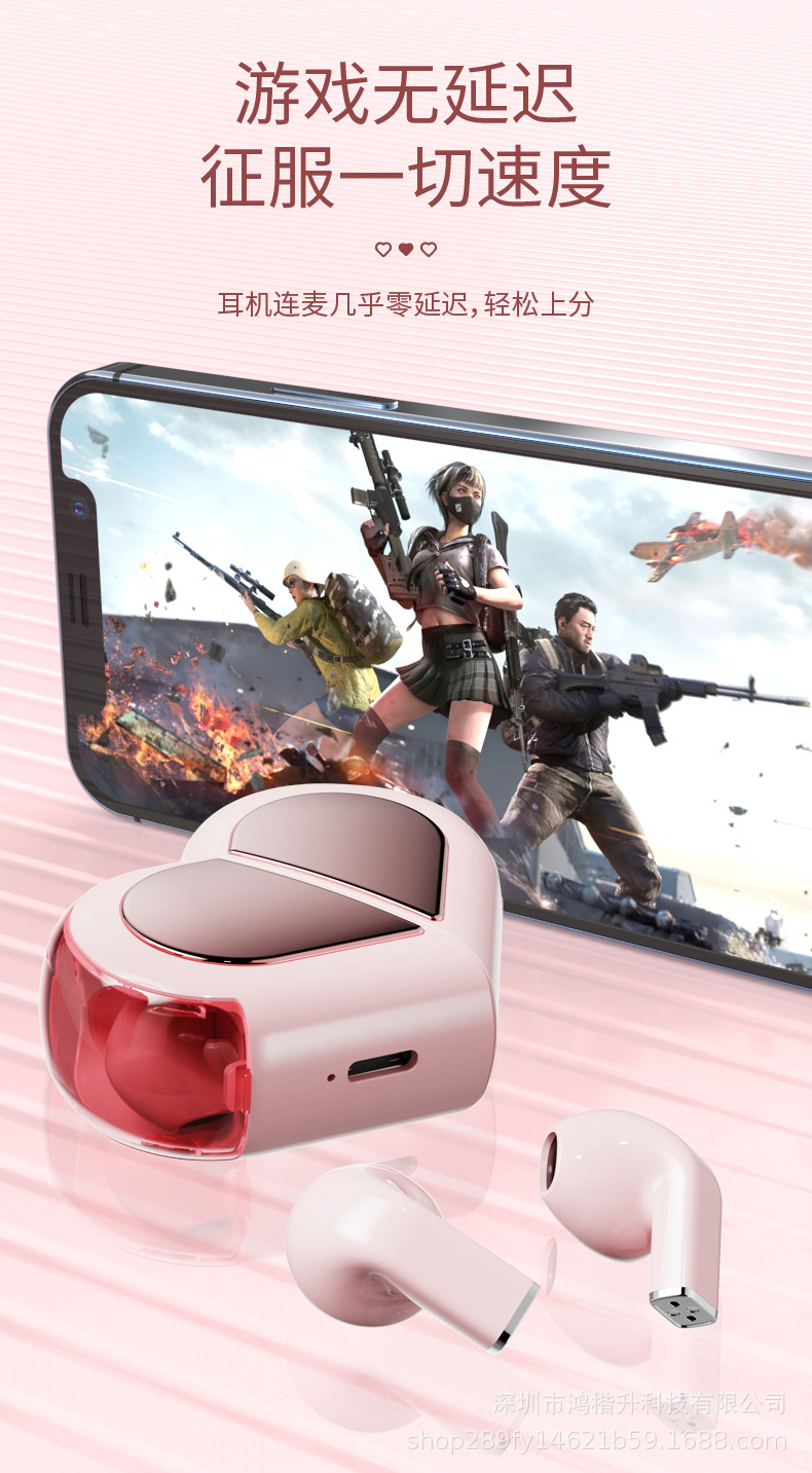 국경을 넘는 회전형 하트 블루투스 이어폰 TWS 인이어 진정한 무선 스포츠 터치 컨트롤 5.4 저전력 변형 미니