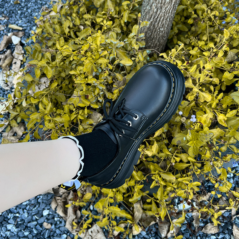 작은 가죽 신발 여성 두꺼운 단독 레이스 업 영국 스타일 신발 작은 남자를위한 검은 두꺼운 힐 마틴 신발 여성의 봄과 가을 새로운스토어 가기