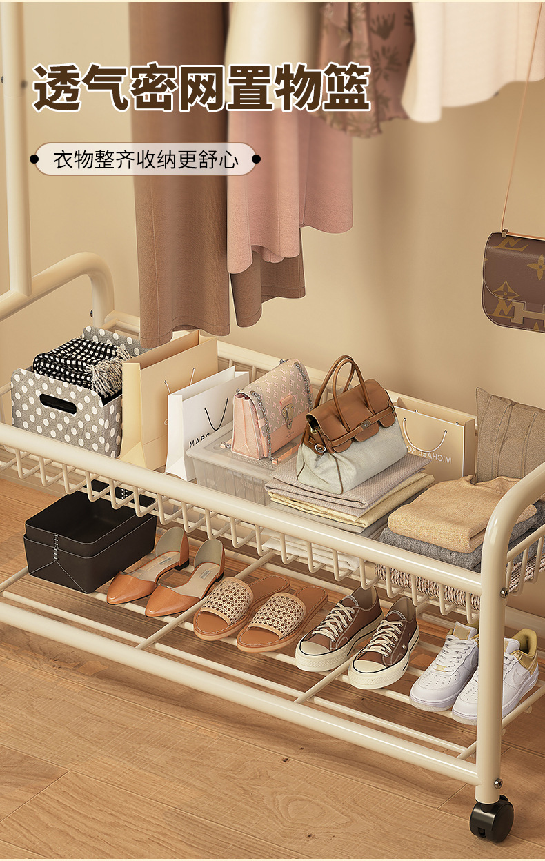 • 120cm 단층 메쉬 바스켓 - 크림 화이트 + 후크 6개 + 금속 범용 휠
