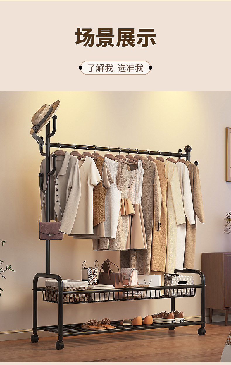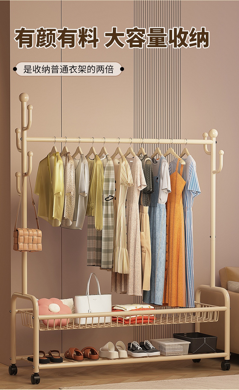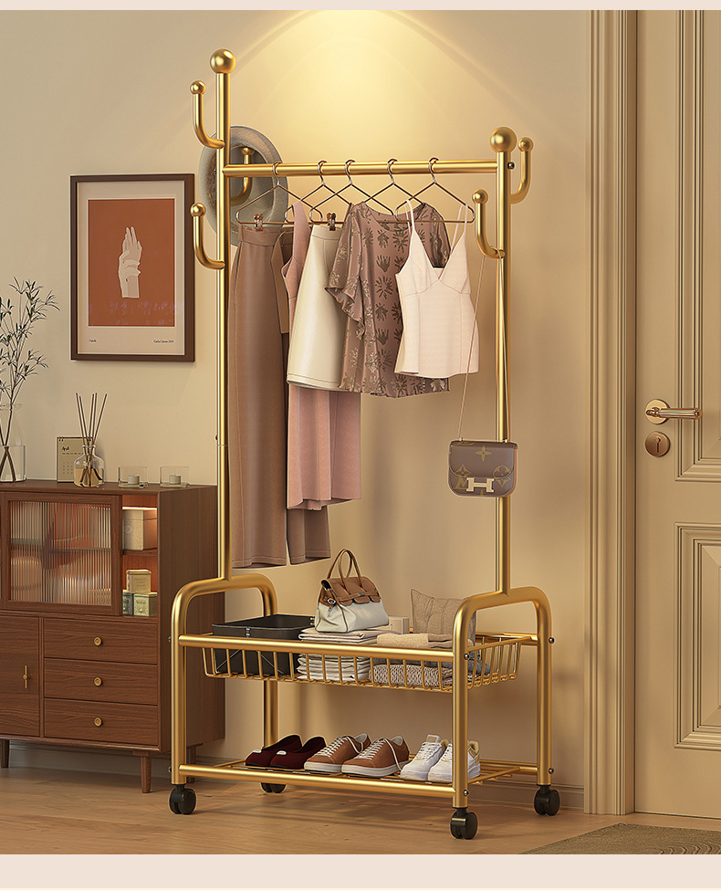 침실 옷 랙 실내 간단한 코트 랙 룸 건조 옷걸이 바닥 가정용 이동식 옷걸이