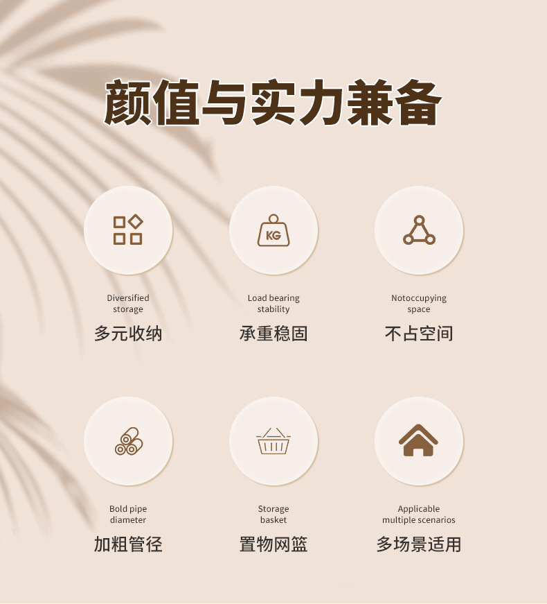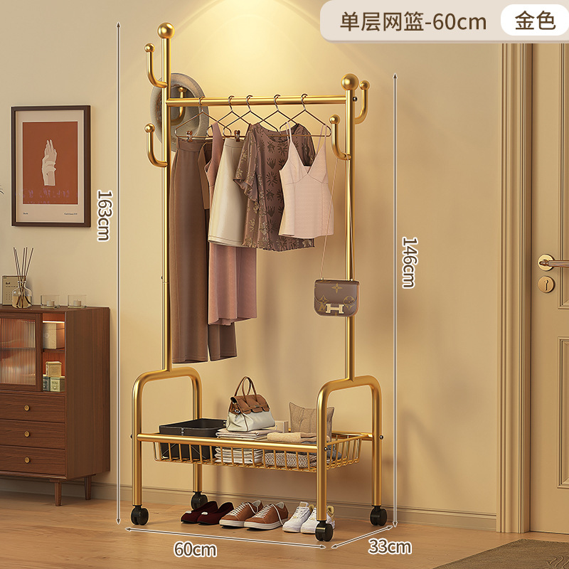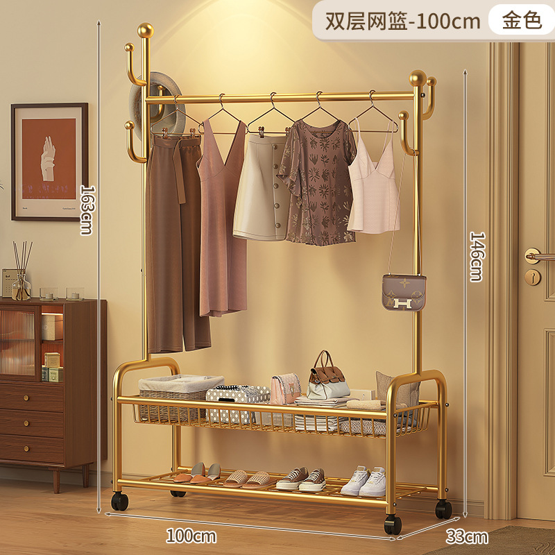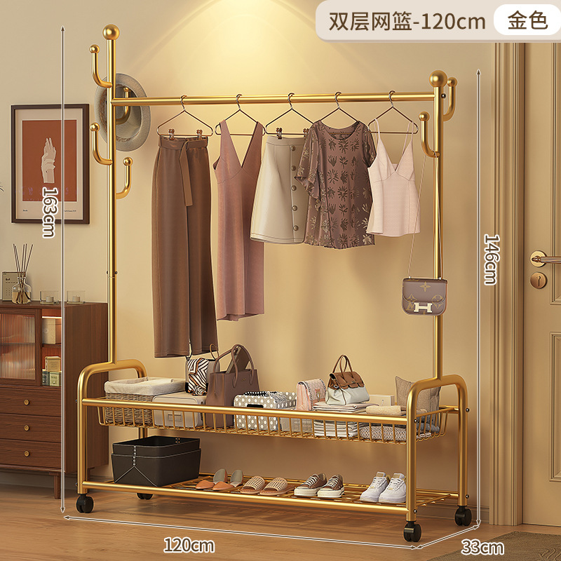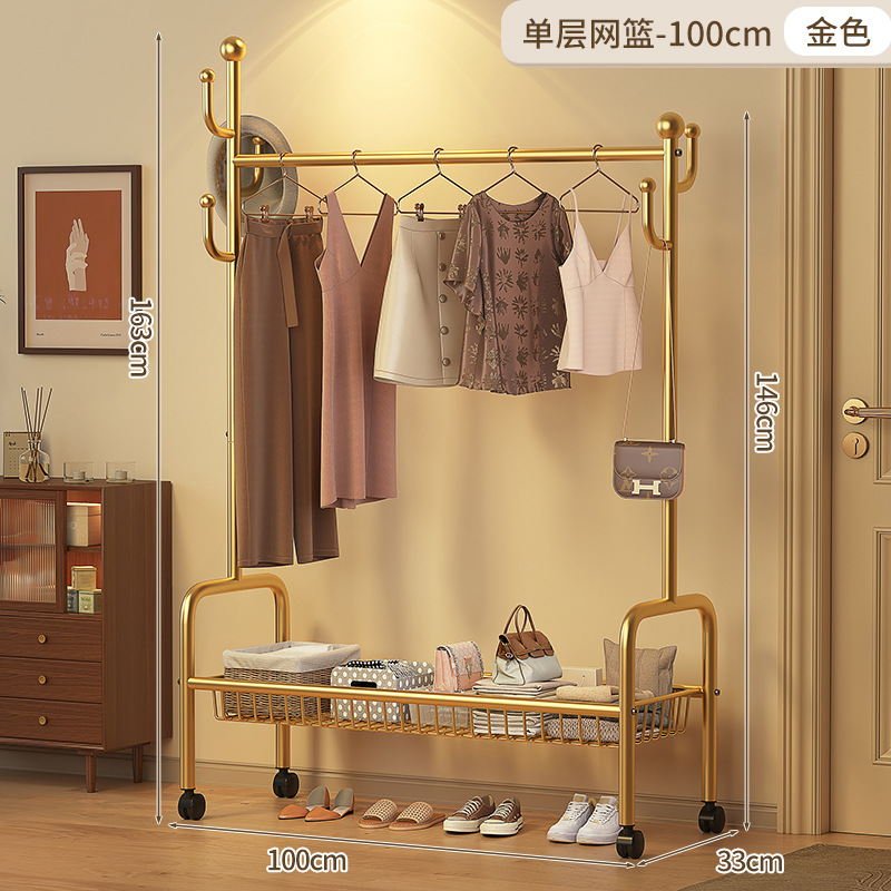 • 120cm 단층 메쉬바구니 - 라이트 럭셔리 골드 + 후크 6개 + 금속 유니버설 휠