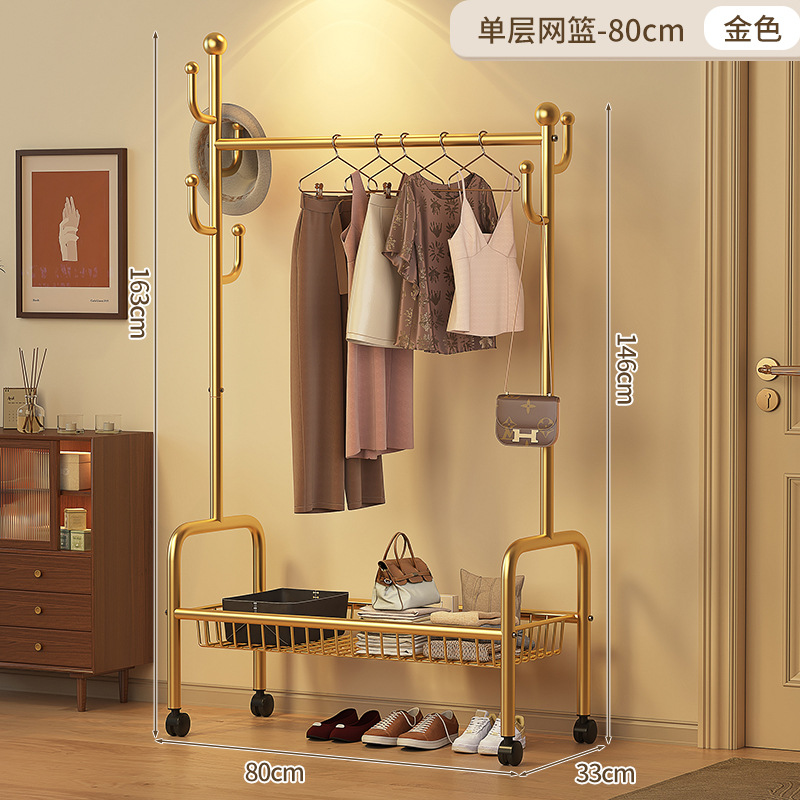 • 80cm 단층 메쉬 바스켓 - 라이트 럭셔리 골드 + 후크 6개 + 금속 유니버설 휠