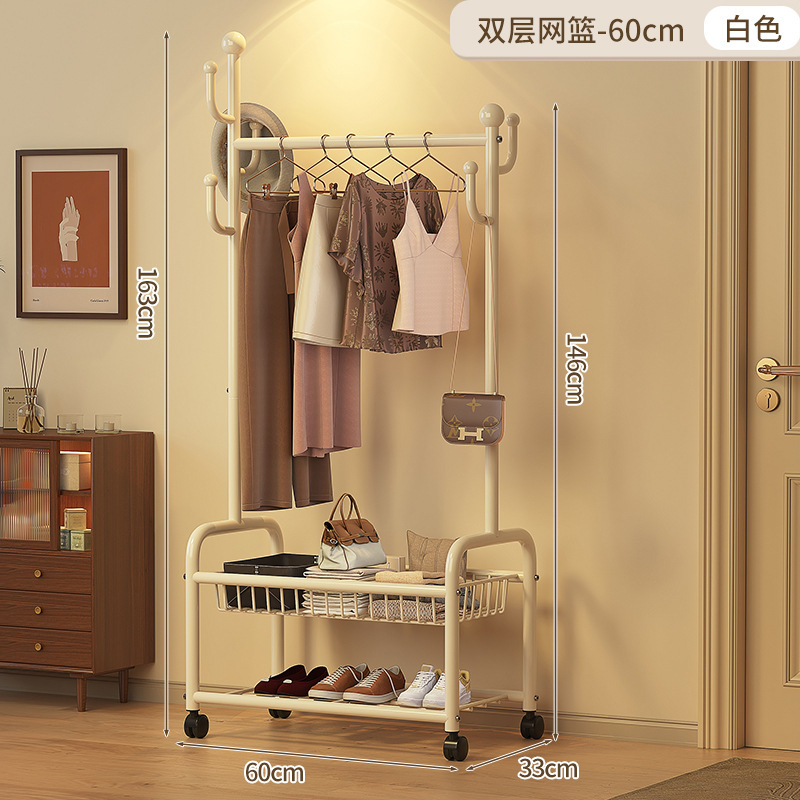 • 60cm 더블 레이어 메쉬 바스켓 - 크림 화이트 + 후크 6개 + 금속 범용 휠
