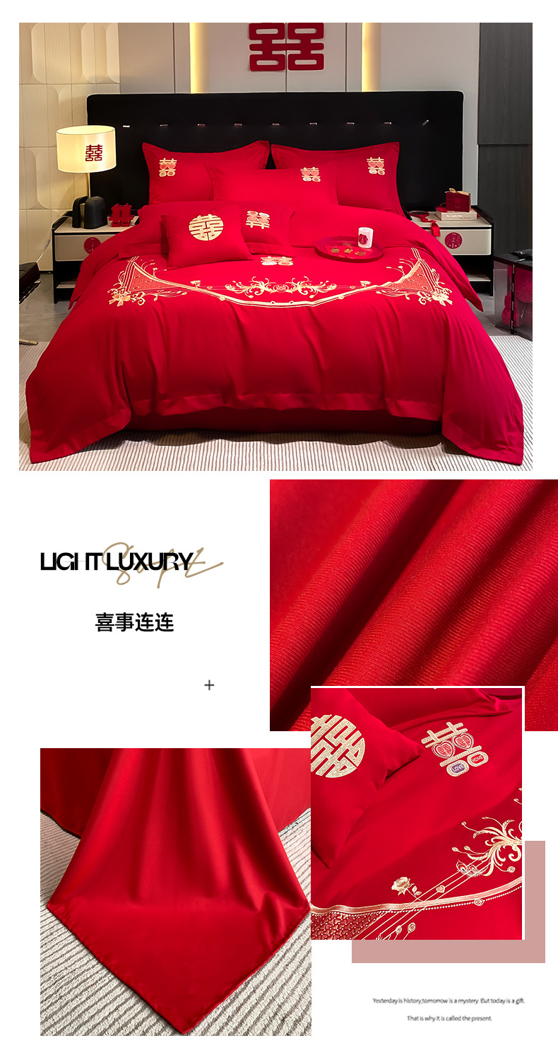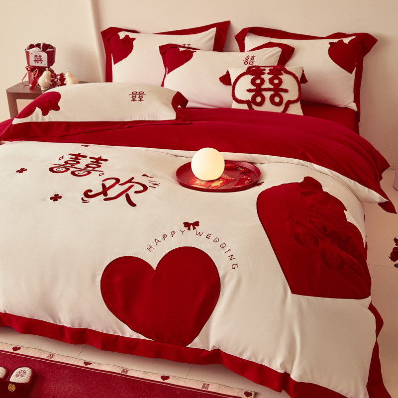 새로운 중국 스타일 웨딩 4 피스 세트 새로운 웨딩 침대 시트 퀼트 커버 웨딩 축하 퀼트 풀 세트 여성 동반 웨딩 룸 축제