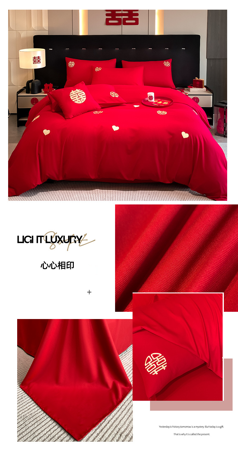 새로운 중국 스타일 웨딩 4 피스 세트 새로운 웨딩 침대 시트 퀼트 커버 웨딩 축하 퀼트 풀 세트 여성 동반 웨딩 룸 축제스토어 가기