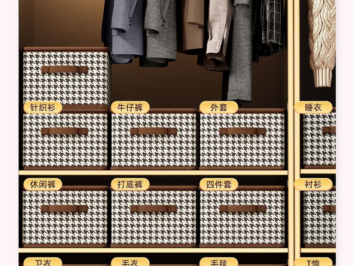 Houndstooth 패브릭 보관 상자 내마모성 가정용 옷장 옷 바지 방진 접이식 보관 상자 서랍 유형 마감