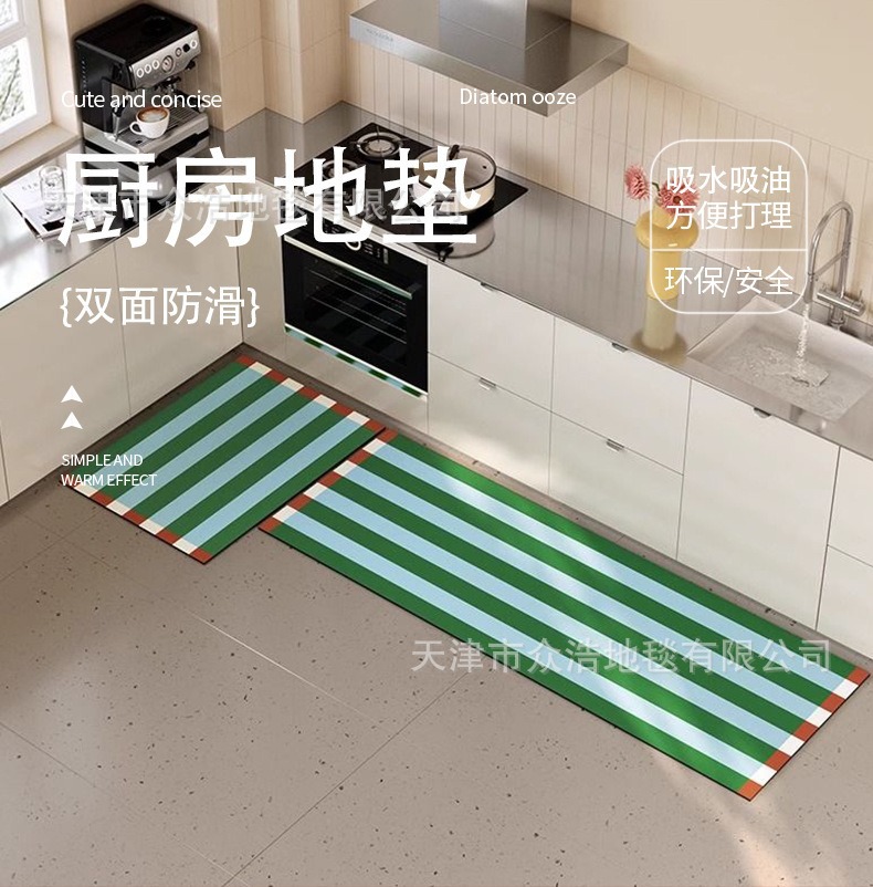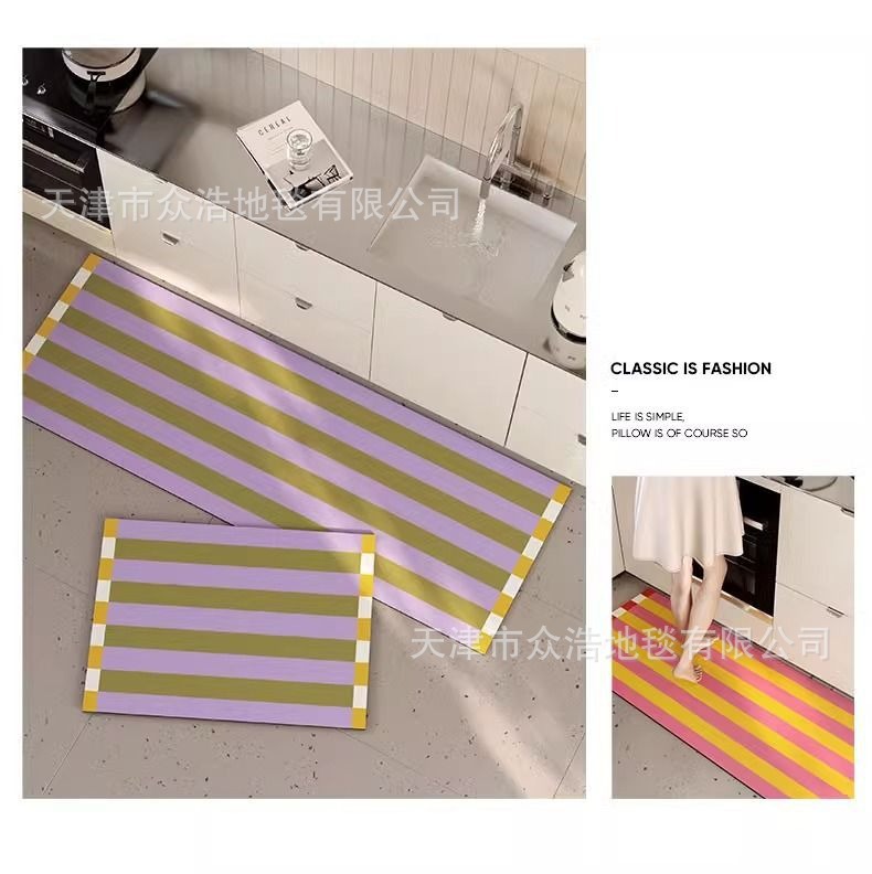 북유럽 주방 Diatom 진흙 매트 흡수성 미끄럼 방지 발 매트 가정용 도파민 줄무늬 빠른 건조 매트 재고 도매