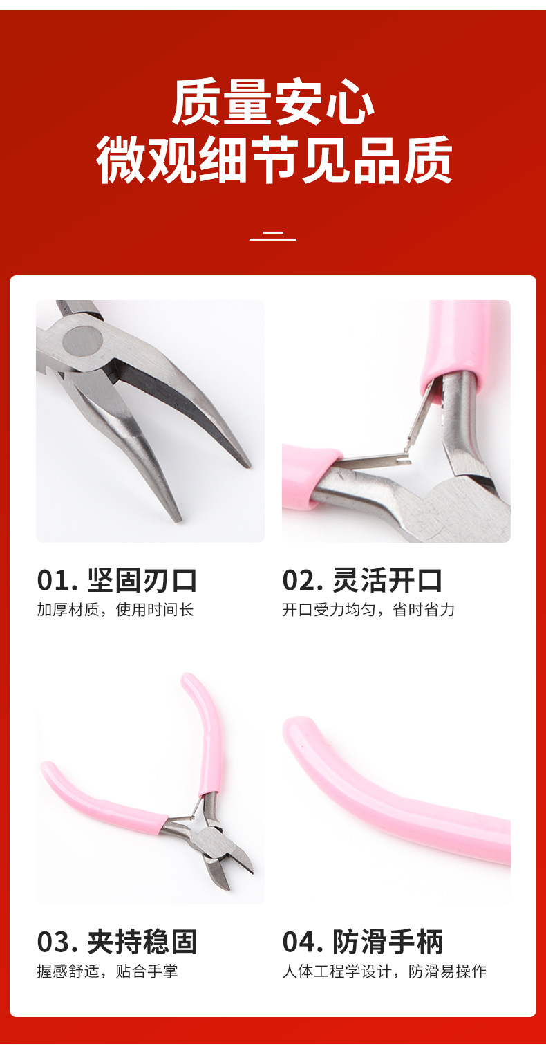 수제 펜치 다기능 이치없는 펜치 둥근 코 펜치 대각선 펜치 미니 플라이어 4.5 인치 핑크 9 피스 세트스토어 가기