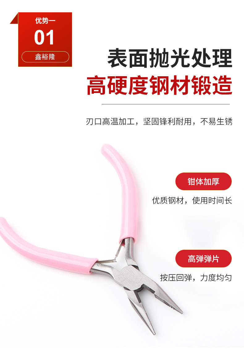 수제 펜치 다기능 이치없는 펜치 둥근 코 펜치 대각선 펜치 미니 플라이어 4.5 인치 핑크 9 피스 세트