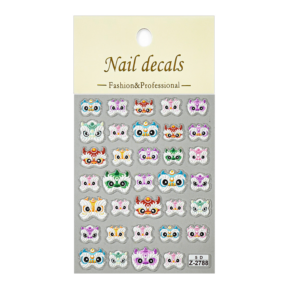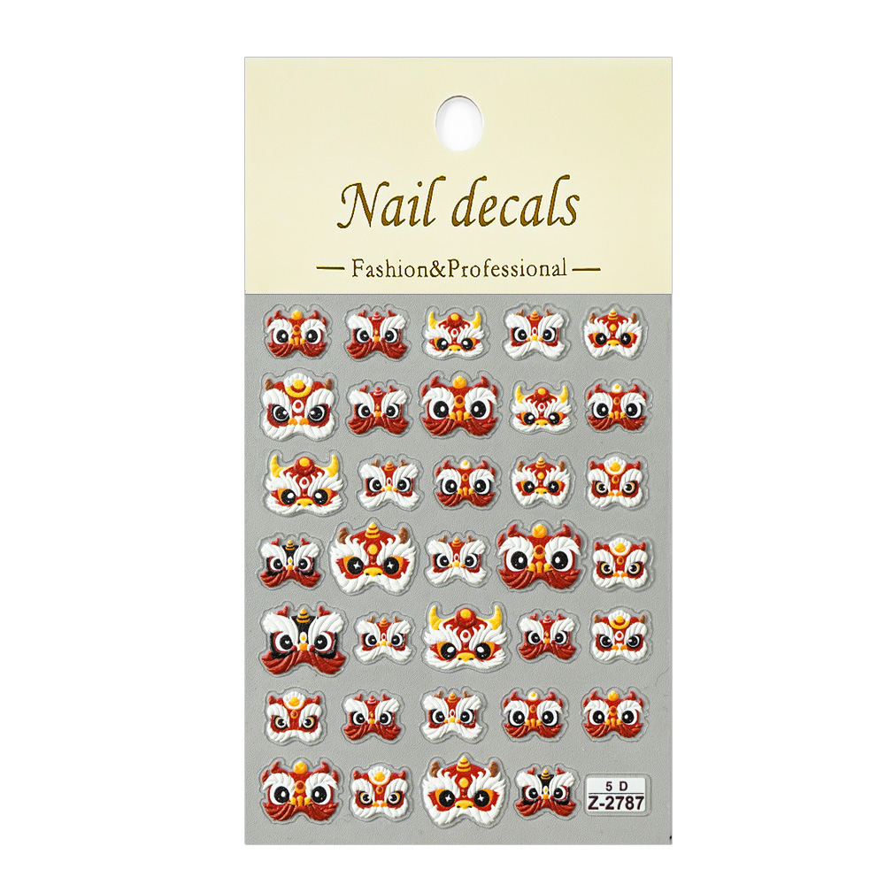 Redanco 새로운 5D 릴리프 그물 빨간 네일 스티커 새해 사자 춤 3 차원 접착 네일 스티커 Z-2787스토어 가기