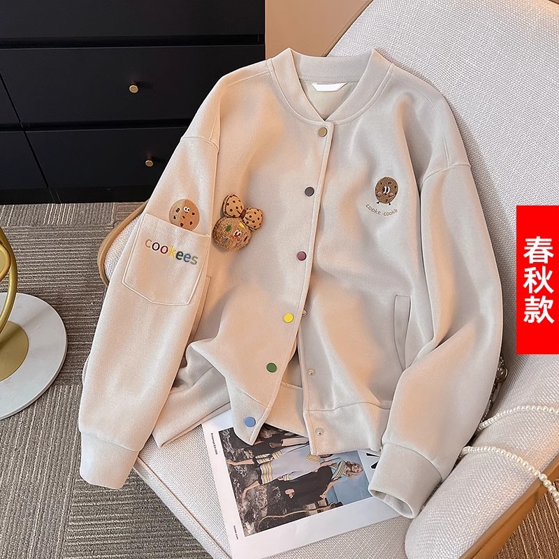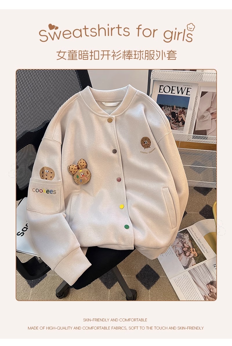 소녀 코트 봄과 가을 새로운 봄 야구 옷 숨겨진 버클 카디건 탑 자수 라운드 넥 세련된 스타일 탑 중 큰 어린이스토어 가기