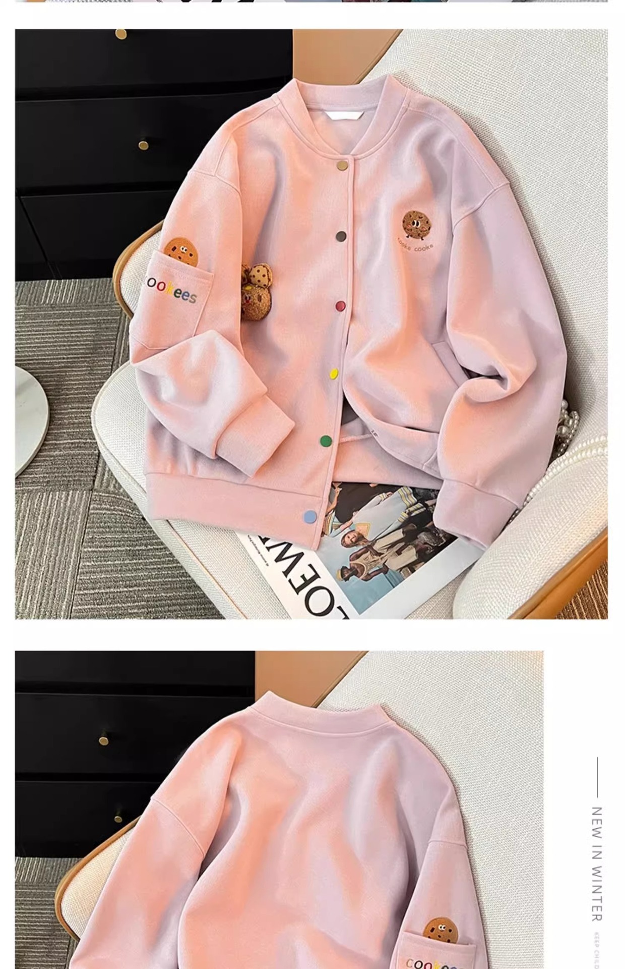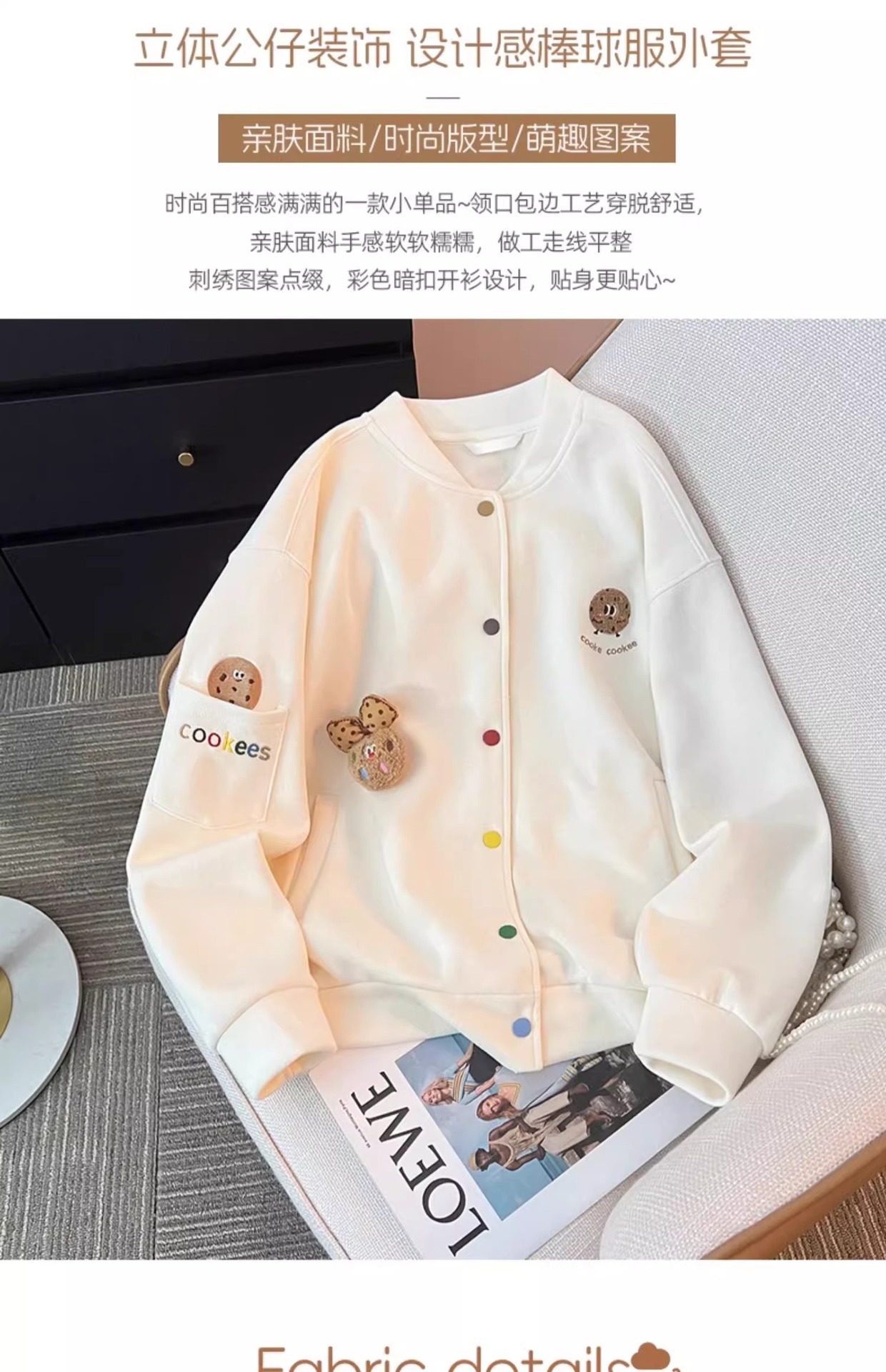 소녀 코트 봄과 가을 새로운 봄 야구 옷 숨겨진 버클 카디건 탑 자수 라운드 넥 세련된 스타일 탑 중 큰 어린이