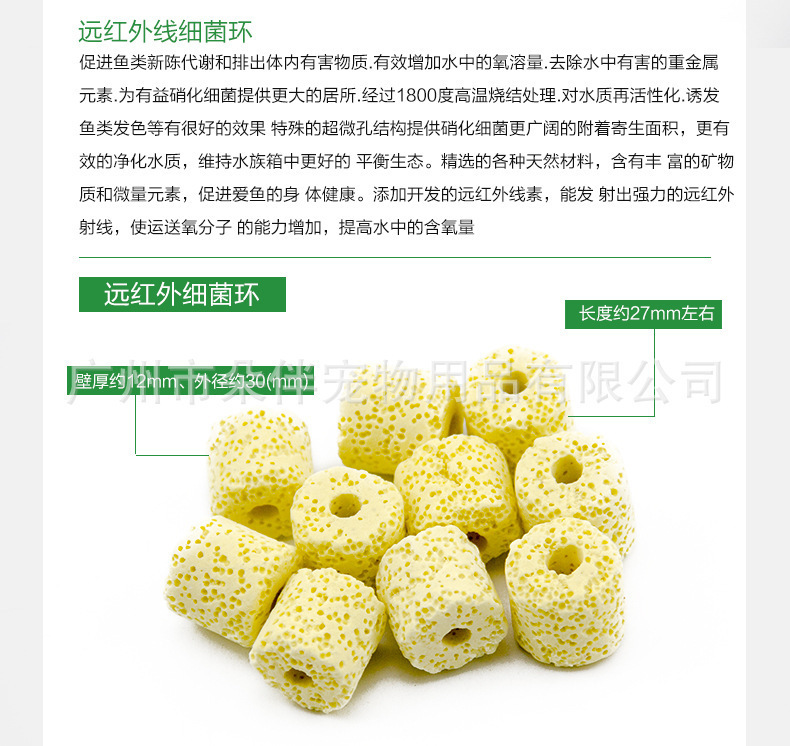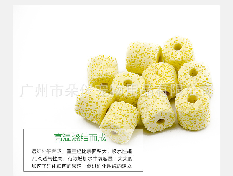 本品可有效促进鱼类新陈代谢和排出体内有害物质.有效增加水中的氧溶量.去除水中有害的重金属元素.为有益消化细菌提供居所.经过高温烧付处理.对水质再活性化.诱发鱼类发色.是一种好的过滤材料。