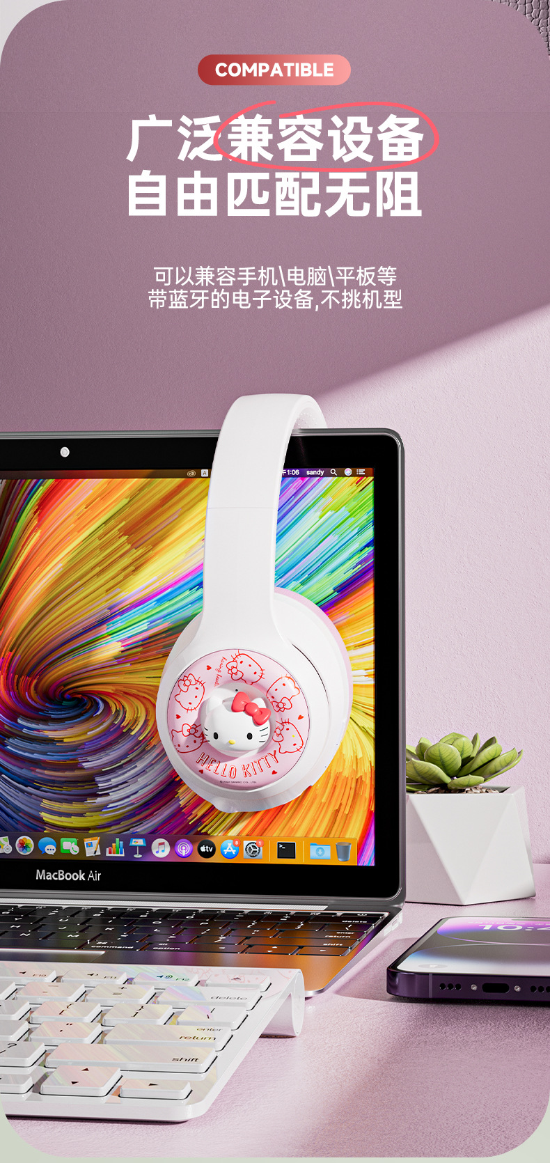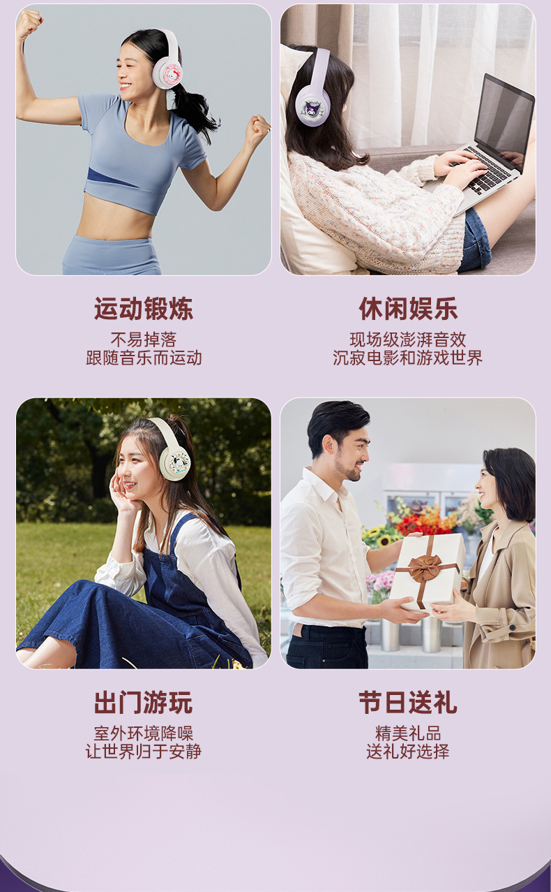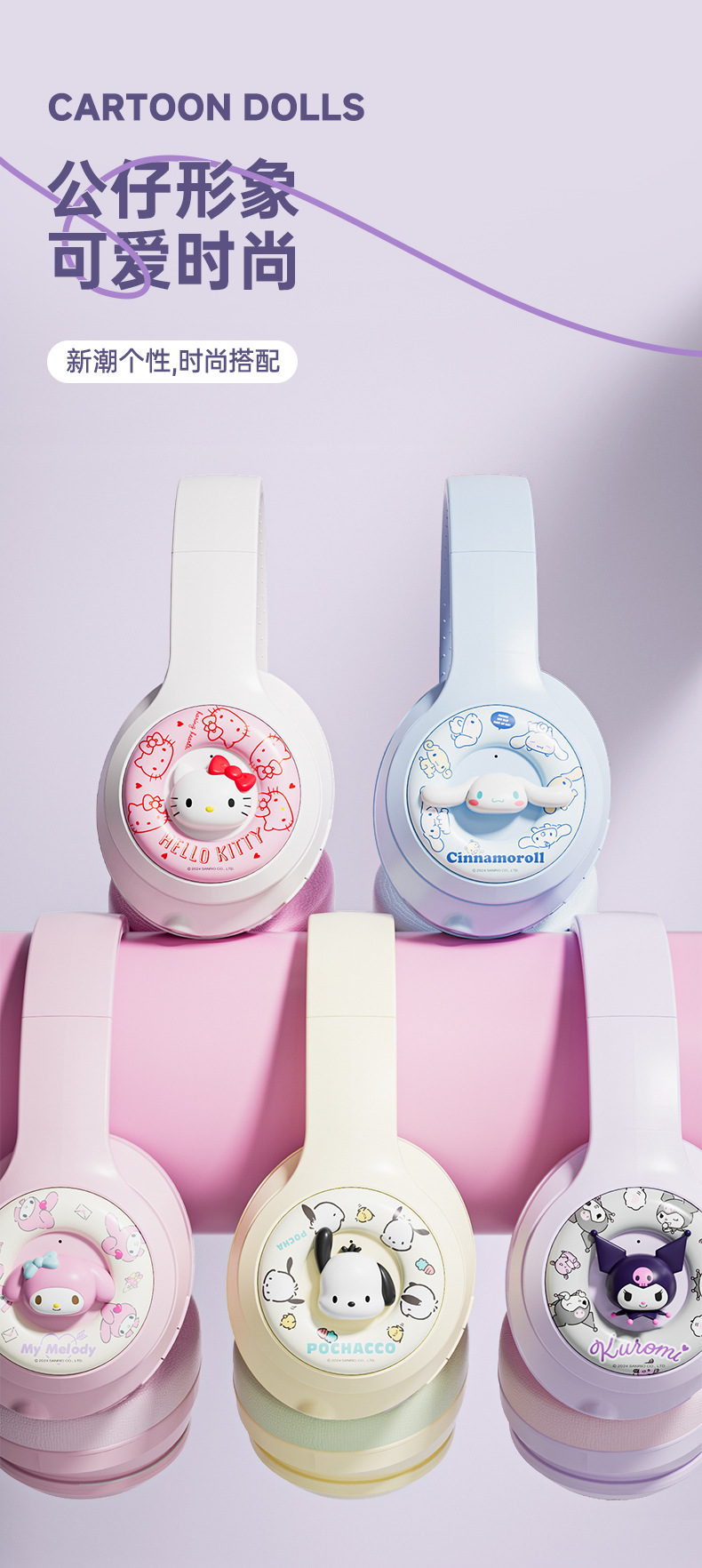 산리오 헤드셋 블루투스 이어폰, 고급스러운 디자인, 무선 노이즈 캔슬링, 긴 배터리 수명, 크리스마스 선물, 게임용 헤드셋