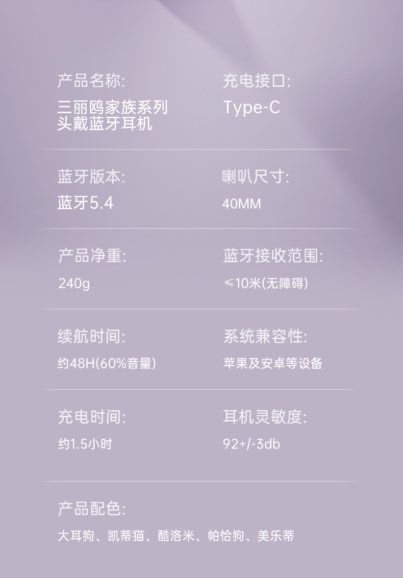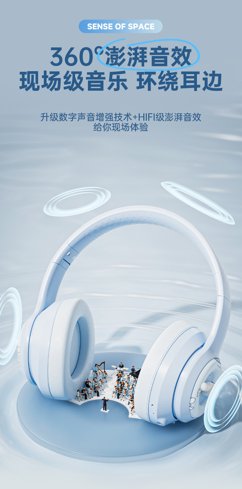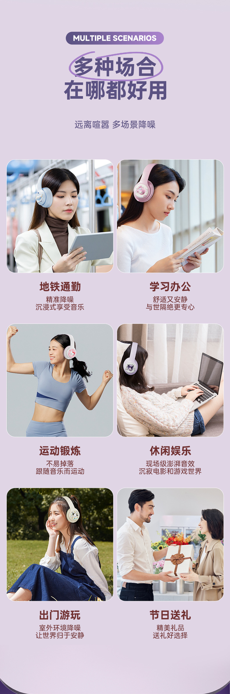 산리오 헤드셋 블루투스 이어폰, 고급스러운 디자인, 무선 노이즈 캔슬링, 긴 배터리 수명, 크리스마스 선물, 게임용 헤드셋