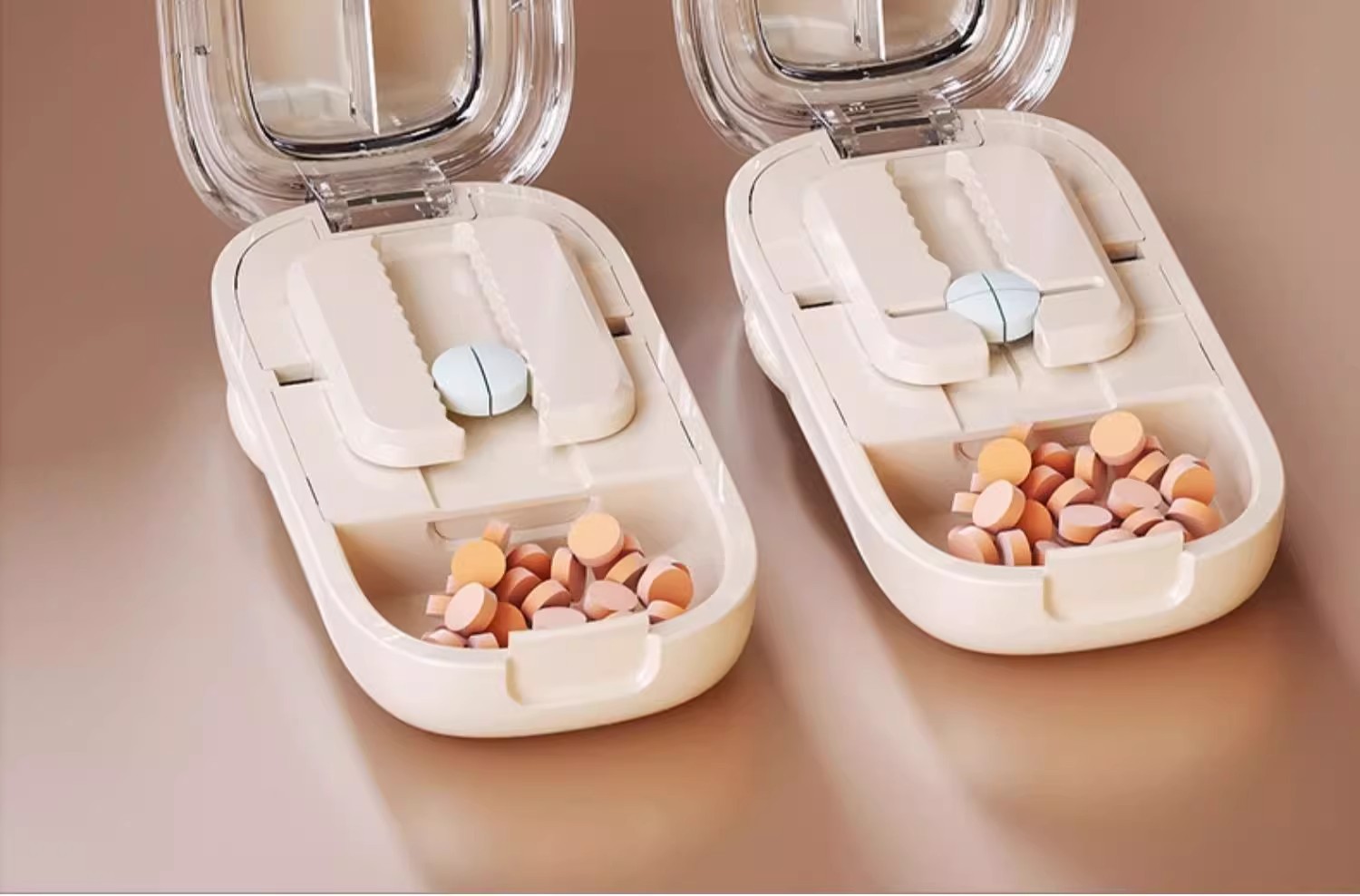 • 크림 화이트 1/4 약절단기 - 약절단 + 약저장