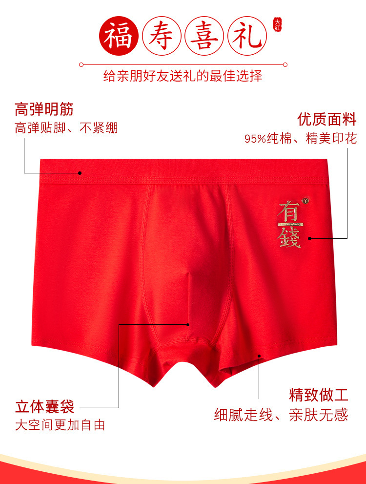 구정 결혼식 남자 속옷 남자 순면 빅 레드 브닝언 박스 남자 4 코너 바지스토어 가기