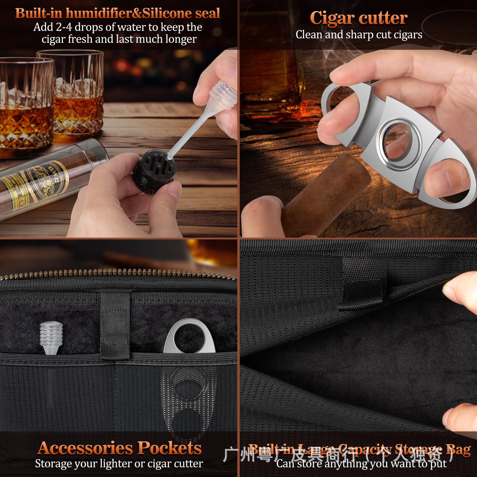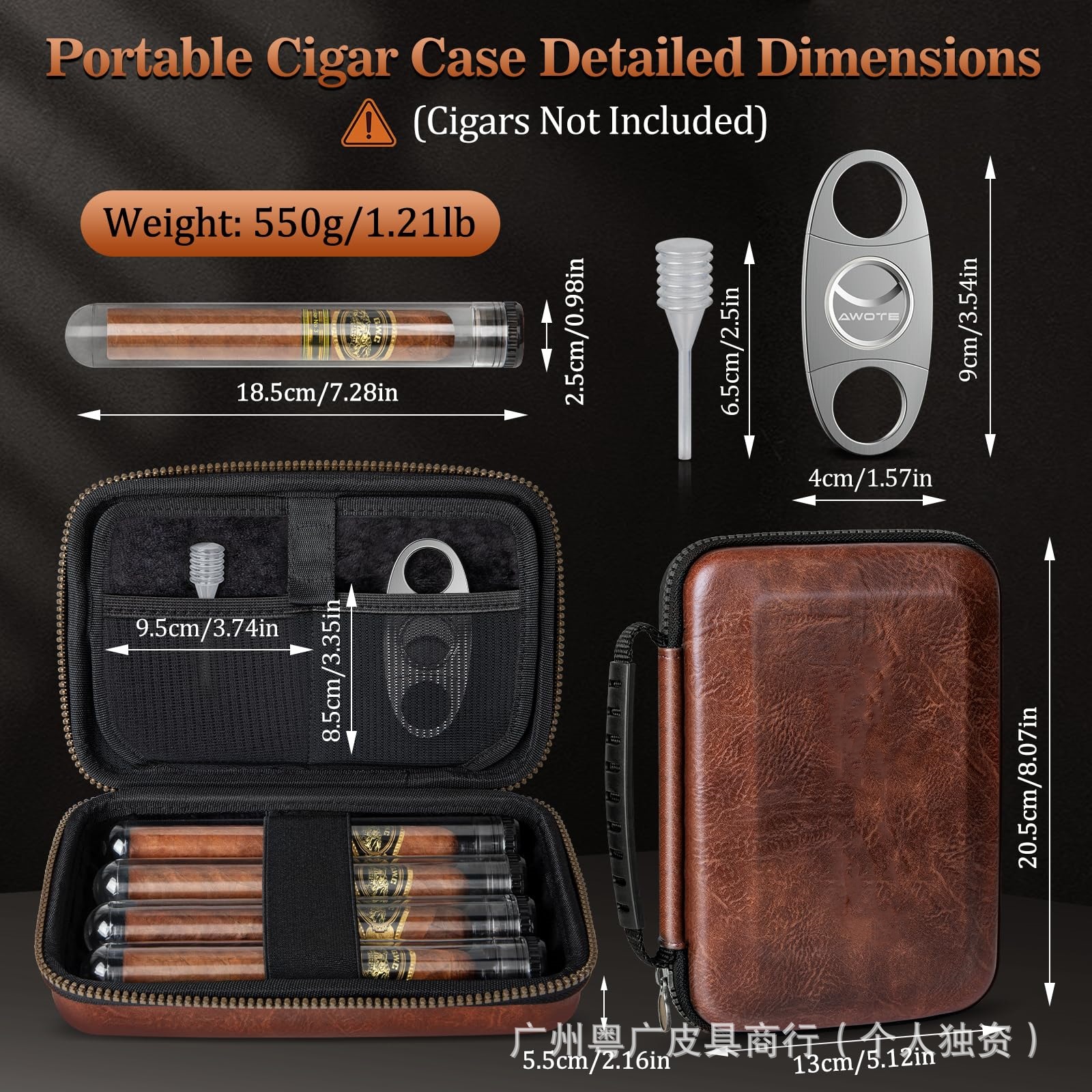 유럽과 미국의 새로운 5 팩 정품 가죽 빈티지 시가 박스 휴대용 지퍼 시가 보습기 시가 보관스토어 가기