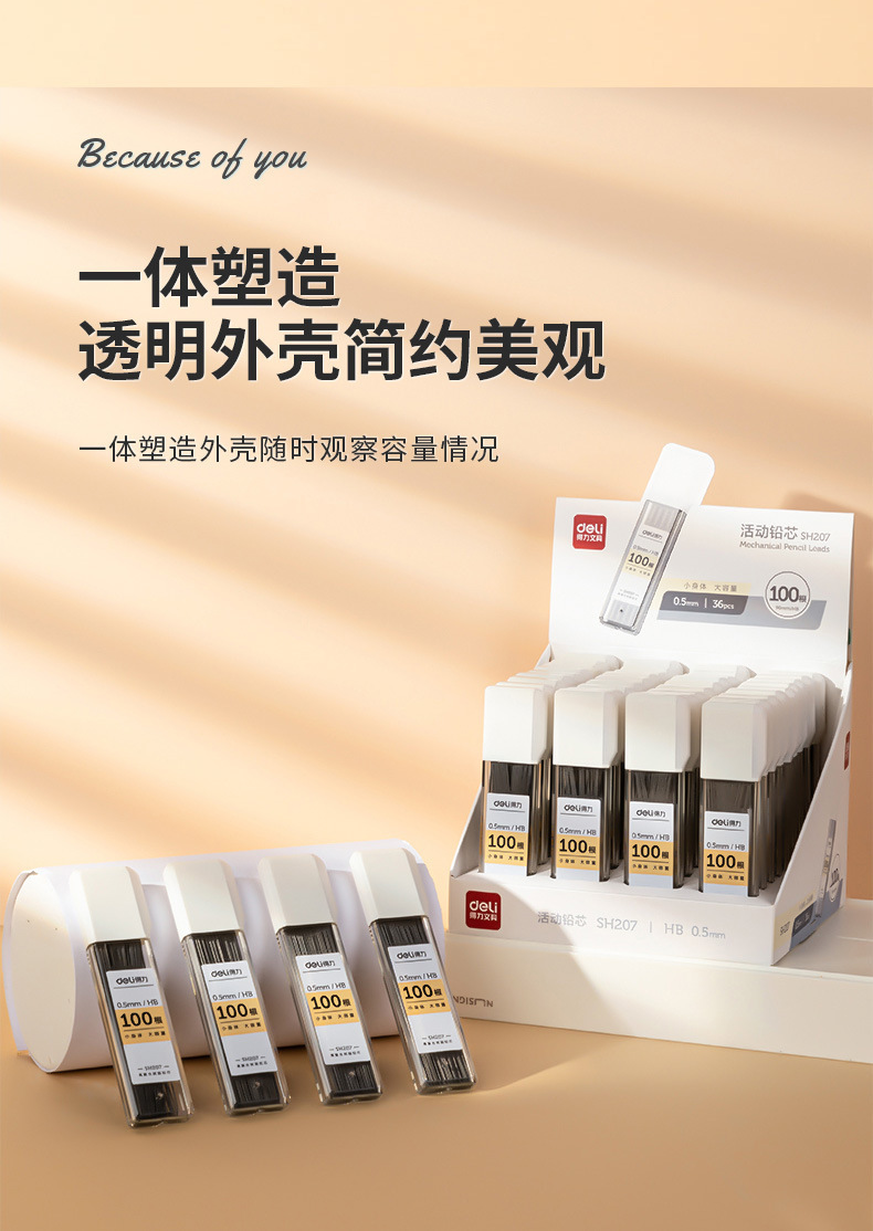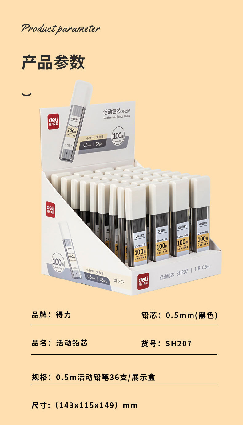 델리 SH207 자동 연필 리드 Hb 리드 0.5mm 자동 리드 0.7mm 대용량 HB 활성 리드스토어 가기
