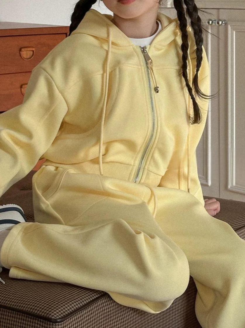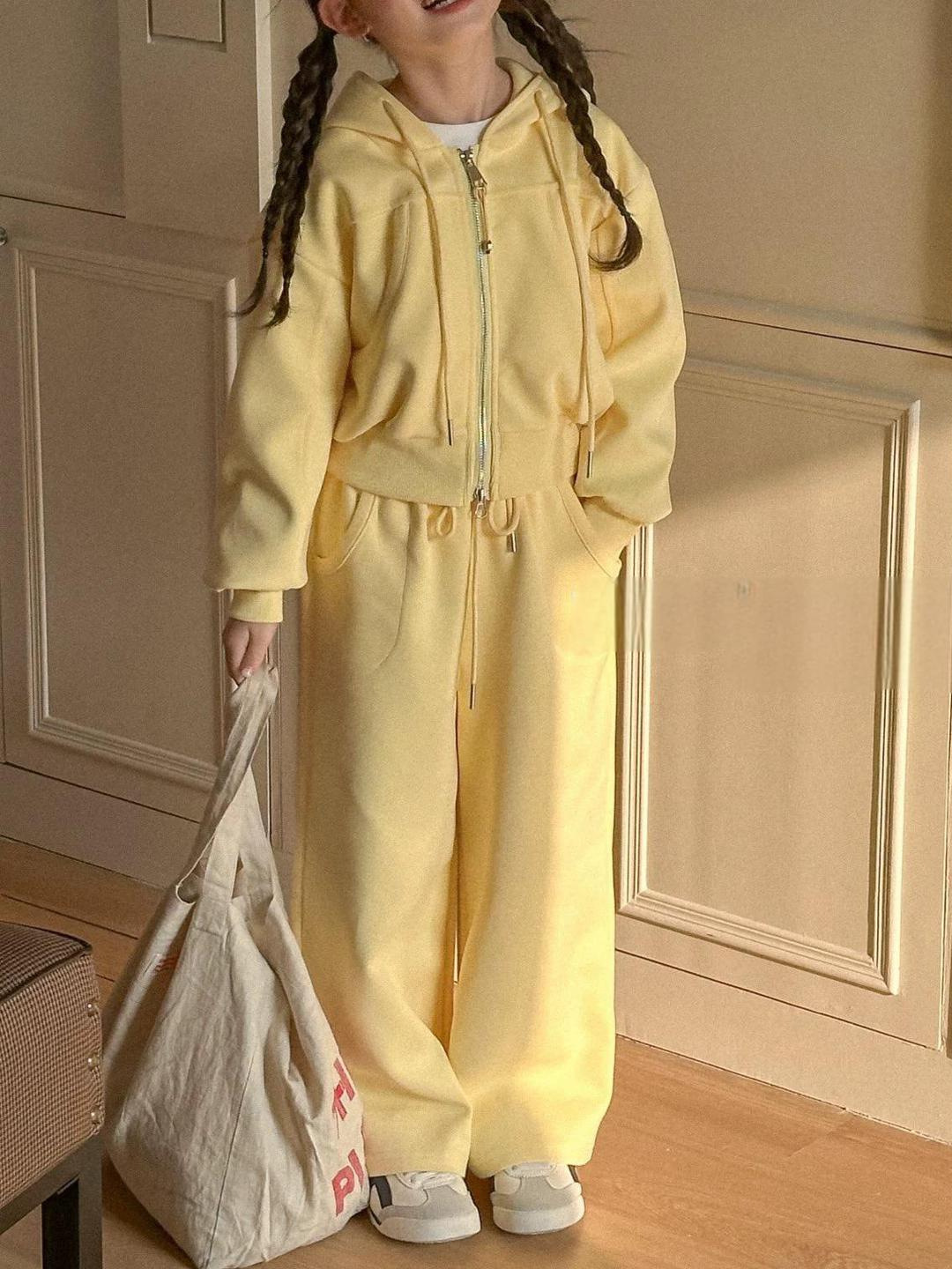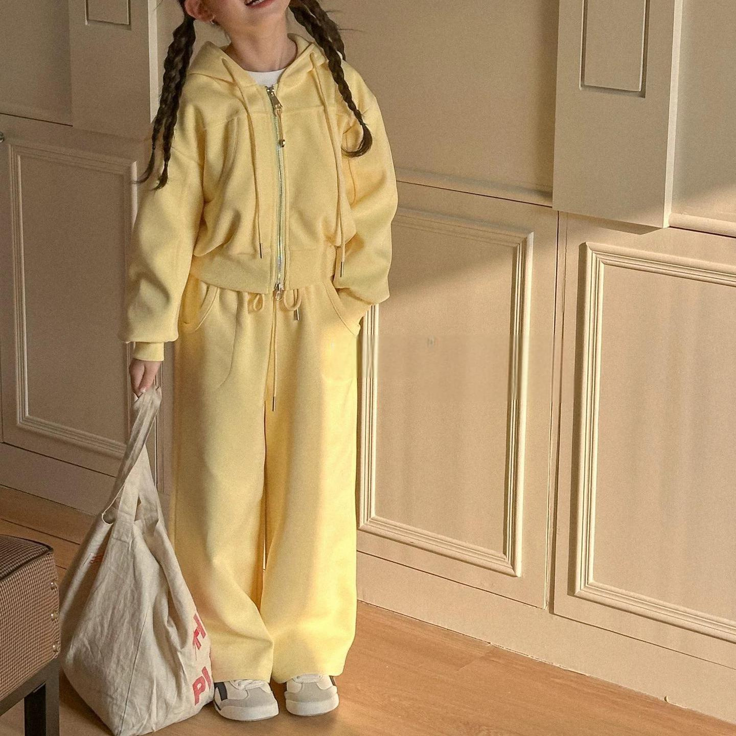 소녀 서양식 후드 스웨터 세트 2025 봄과 가을 소녀 느슨한 카디건 캐주얼 바지 대형 어린이를위한 투피스 세트