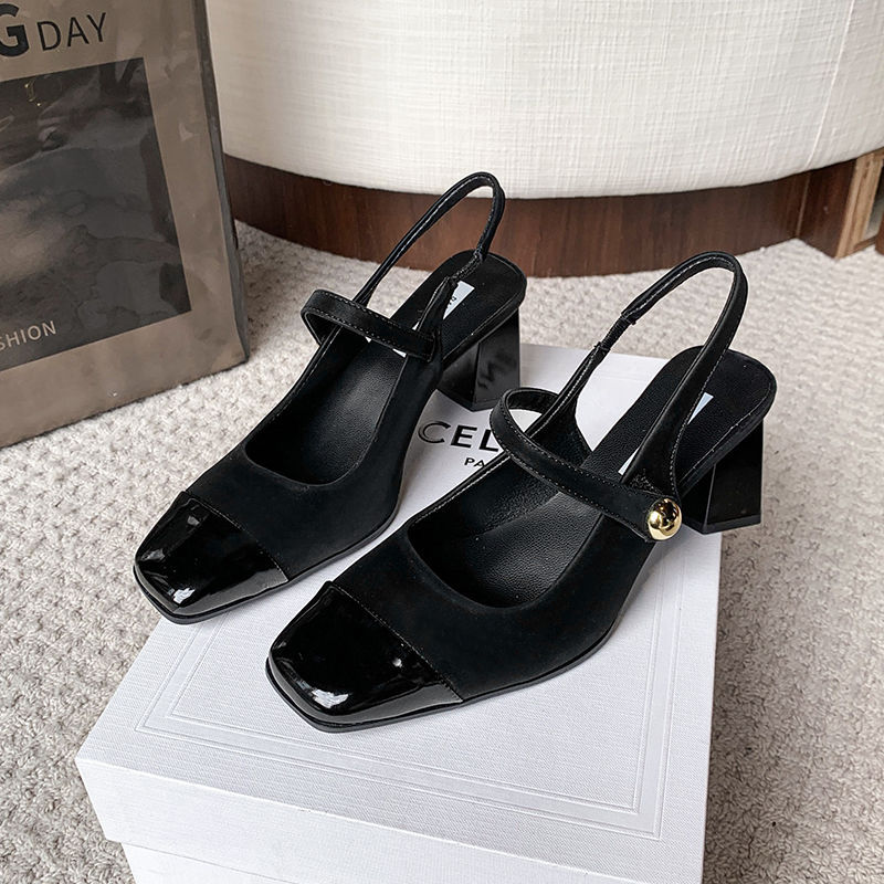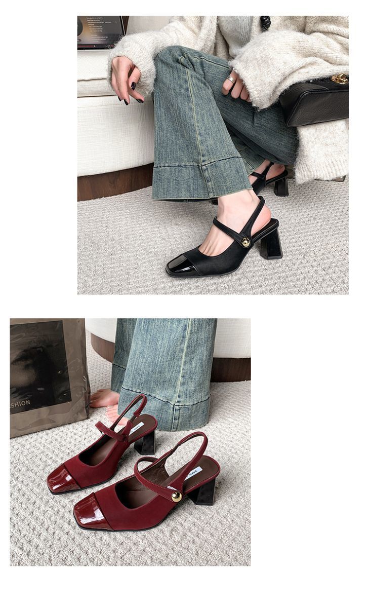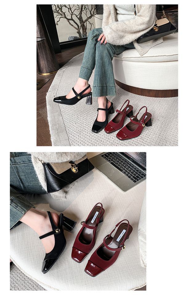 레트로 바오터우 샌들 여자 여름 2025 새로운 도착 원피스 빨간 하이힐 피곤하지 않은 발 두꺼운 뒤꿈치 우아한 싱글 레이어 신발스토어 가기