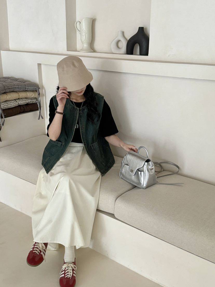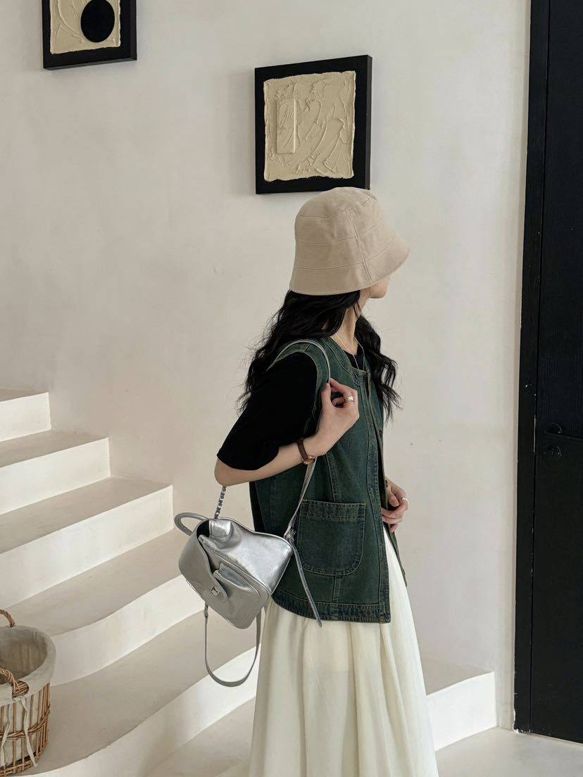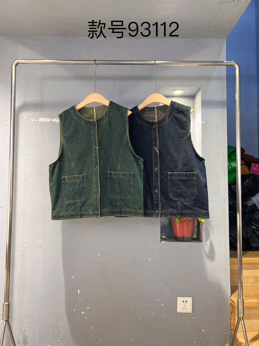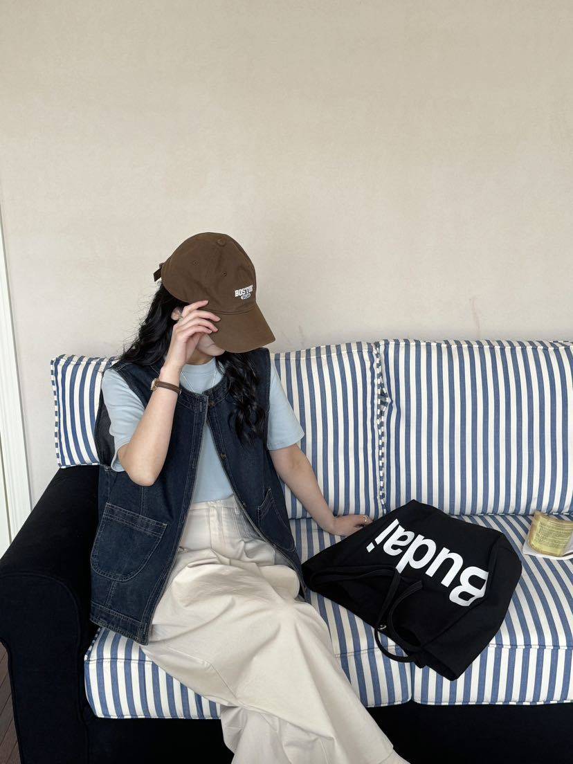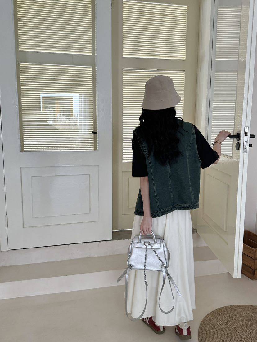 데님 조끼 2025 새로운 간단한 레트로 한국 스타일 라운드 넥 싱글 브레스트 솔리드 컬러 올 매치 느슨한 민소매 여성스토어 가기