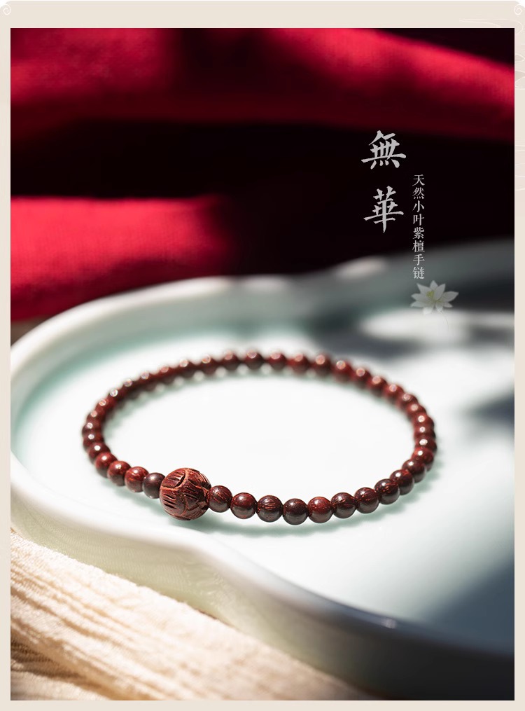 • 4mm 작은 잎 자단 연꽃 팔찌