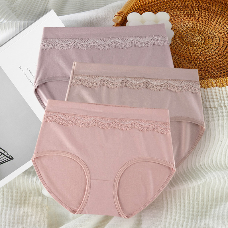 여성 속옷 순수한 통기성 면화 브리프 중간 허리 레이스 마마 지방 여성의 통기성 속옷 증가