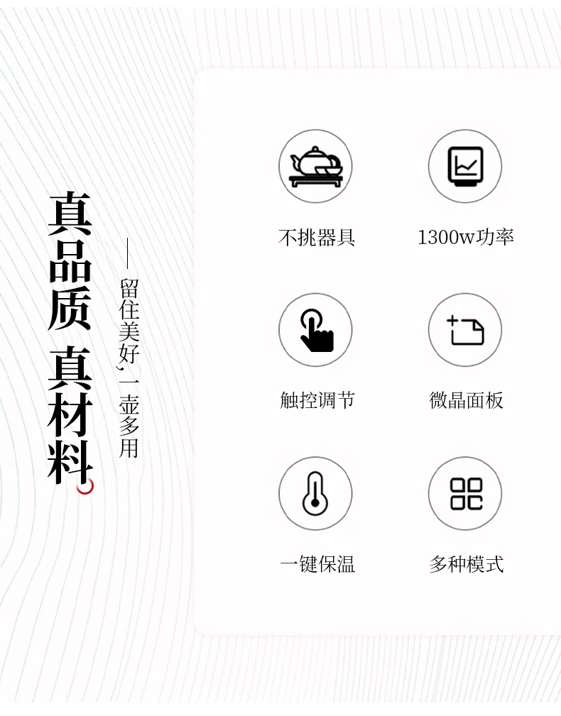 • 투명 리프트 주전자 A1200ml+GM303 흑단 전기 세라믹 스토브 1300W