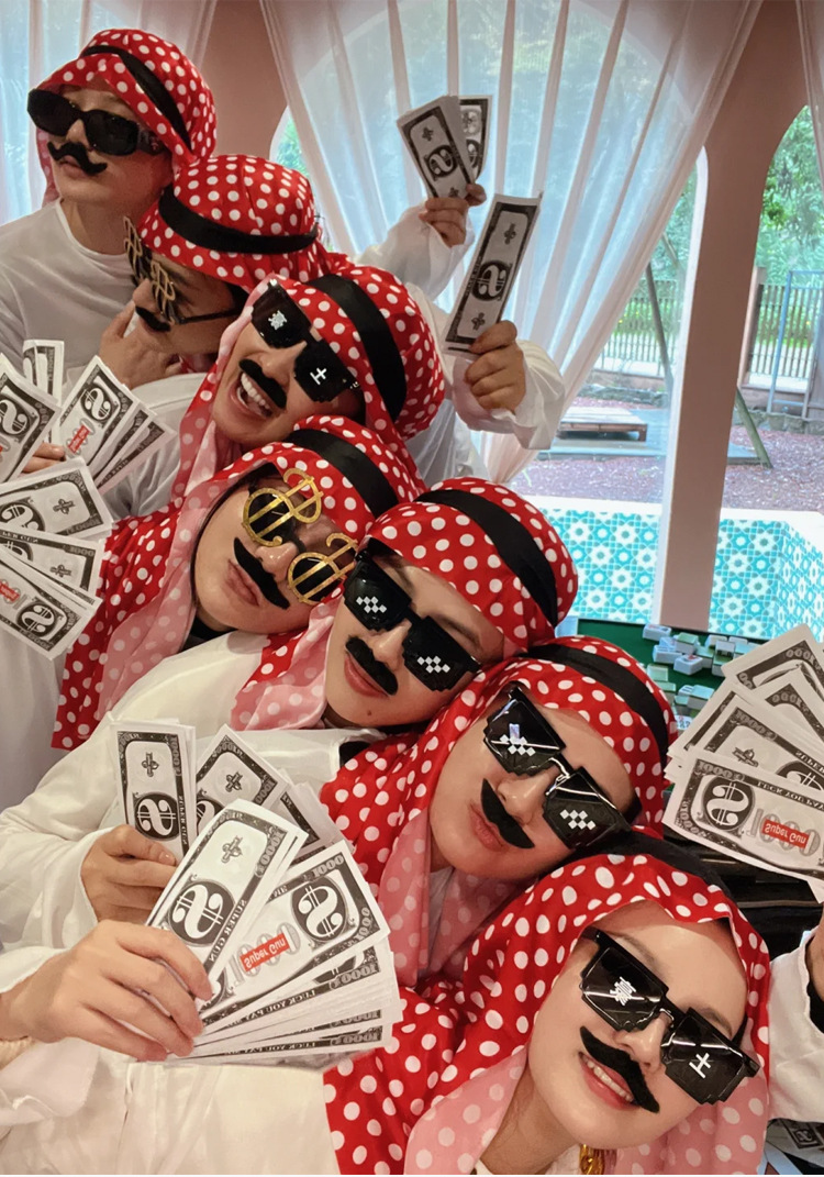 • 중동 리치 로브 [부티크] + 모자이크 안경 + 빅 골드 체인 (수염 포함)