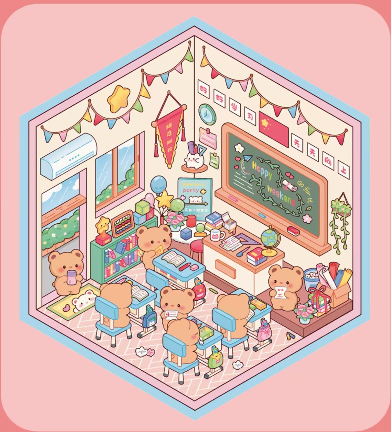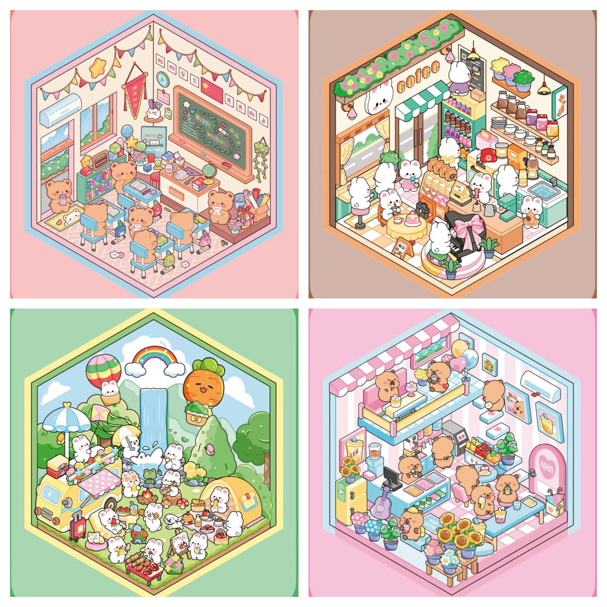 조경 스티커 3 차원 오두막 어린이 교육 스태킹 스티커 국경 3 차원 스티커 귀여운 스티커 어린이 선물스토어 가기